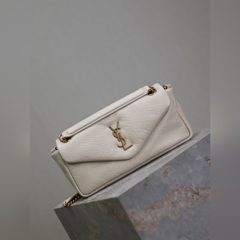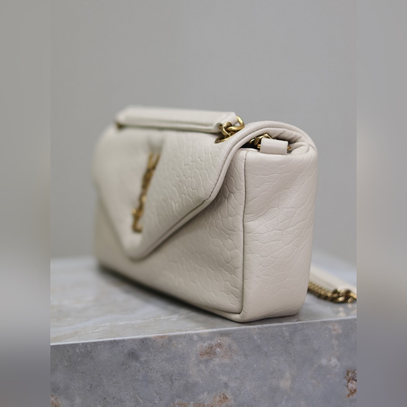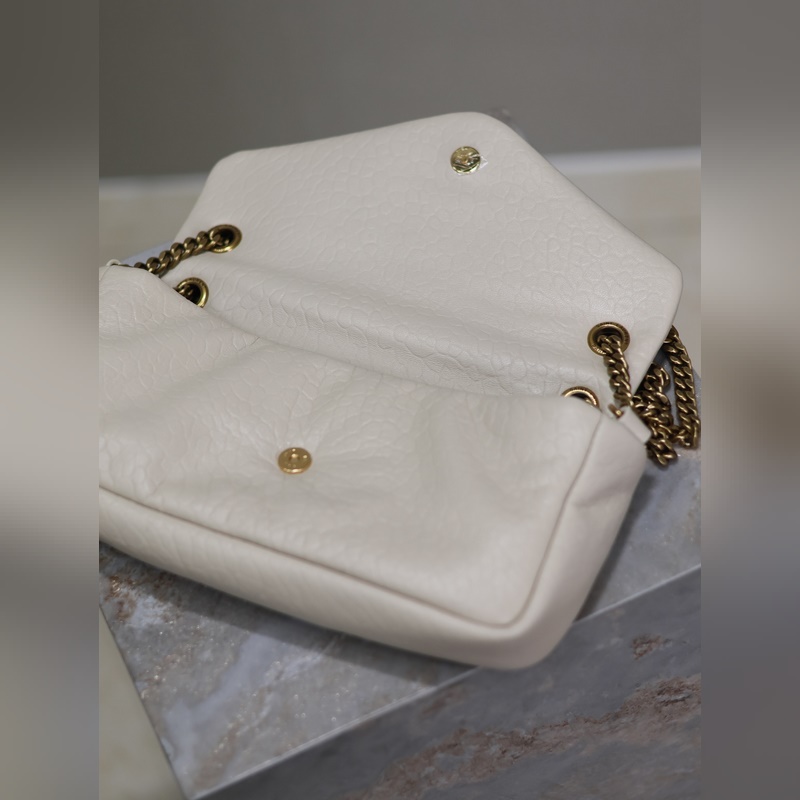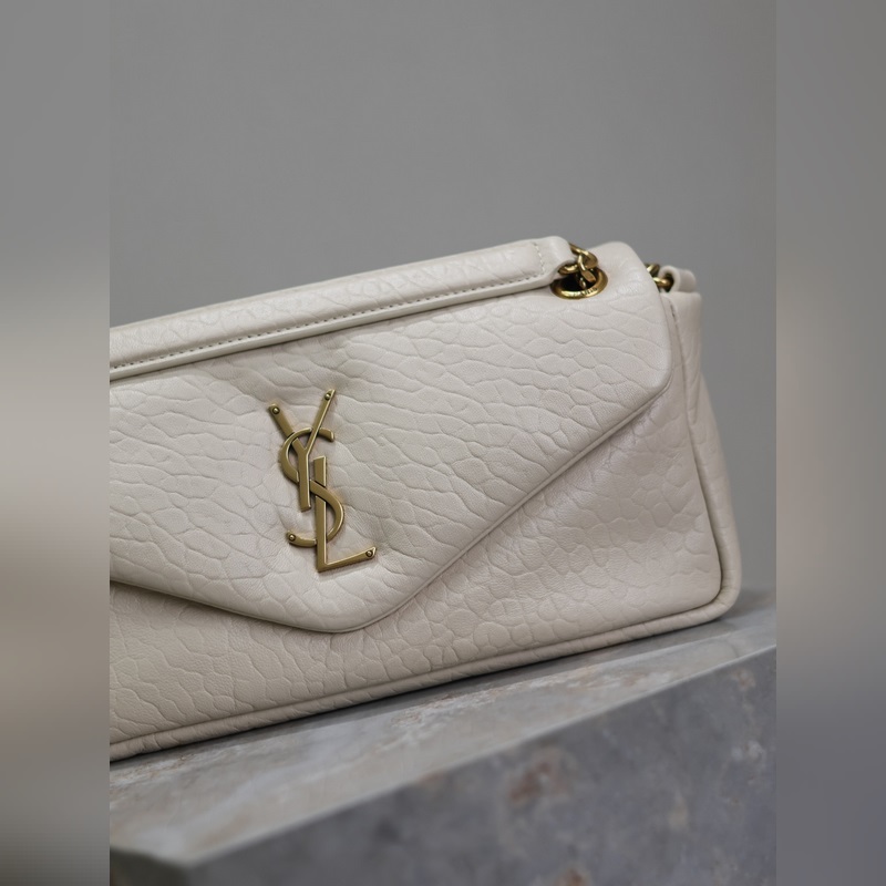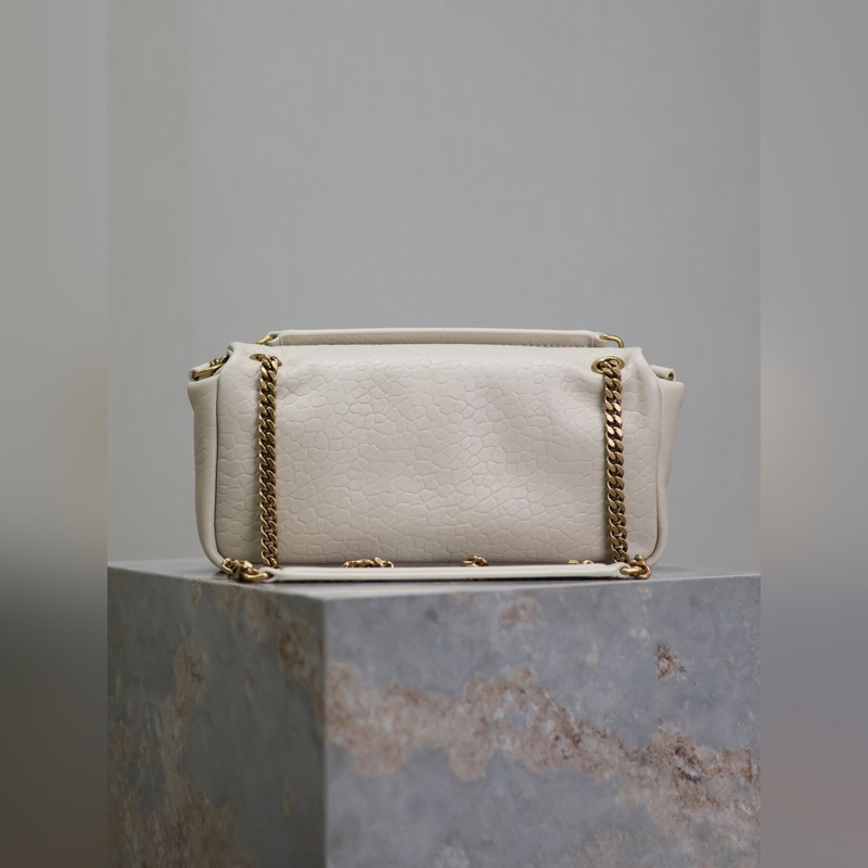 Importált olasz báránybőrből készült, puha és finom érzés. A klasszikus Y logó, a lánc és a gomblyuk vasalat mind Barkin matt hardverből készült. A táska nyílása össze van hajtva és mágneses pattintással lezárva, ami légmentességben és biztonságban első osztályú. A táskában cipzáras belső zseb található mobiltelefonok és értéktárgyak számára. Nincs extra belső zseb kialakítás, így kedved szerint használhatod
