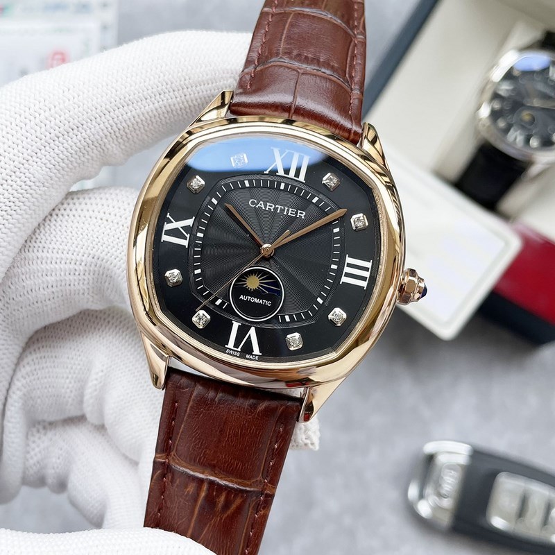Cartier Cartier butik férfi, klasszikus nagy háromkezes karóra holdfázisú dizájnnal