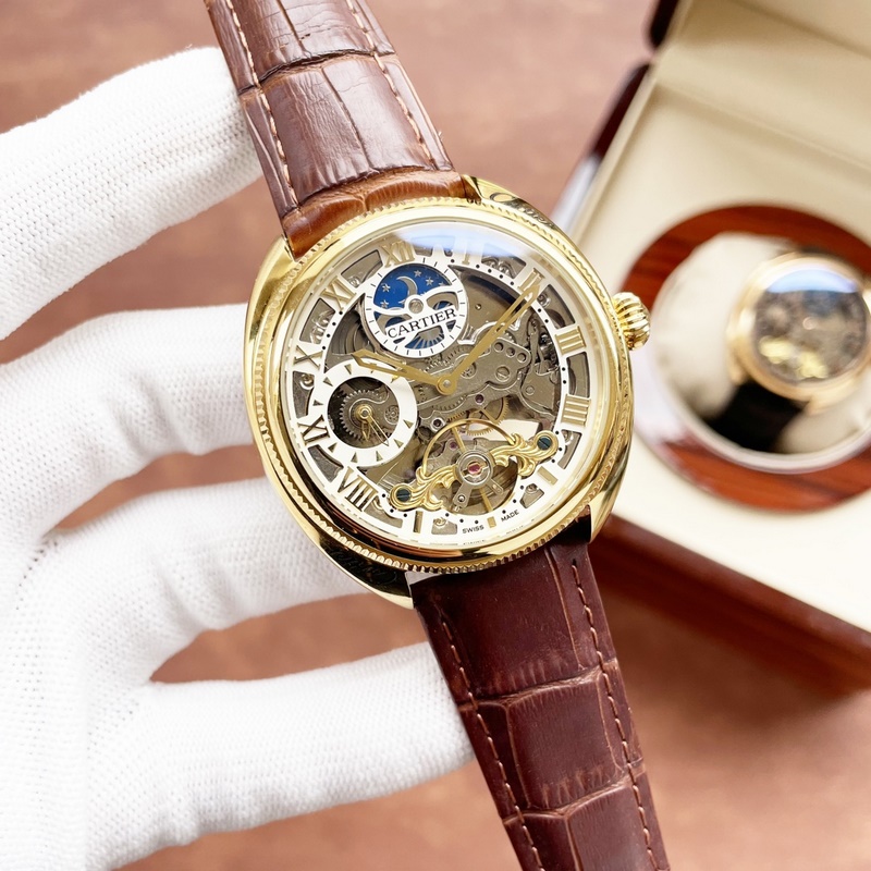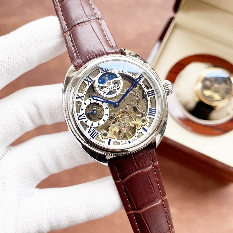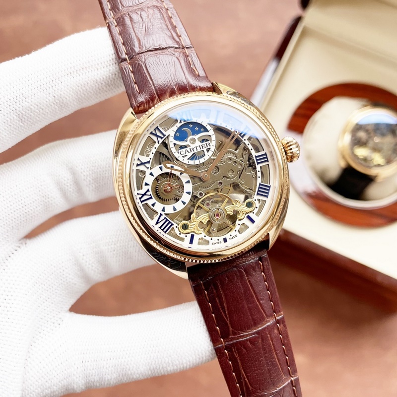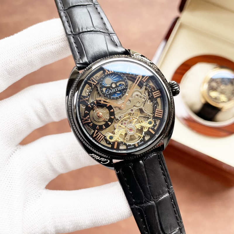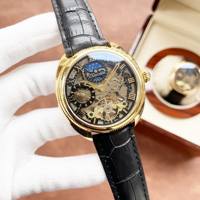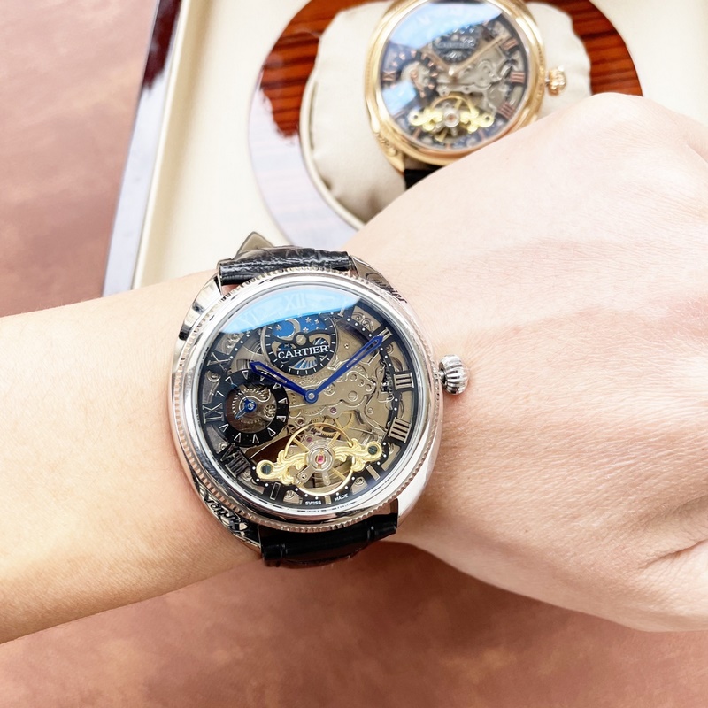 Cartier férfi karóra, éles üreges dizájnnal, igényes kivitelezéssel, eredetiséggel, nemes hangulattal és úri stílussal. Teljesen automatikus mechanikus mozgást alkalmaz, felső 316-os rozsdamentes acél tok és szíj, ásványi szupertükör, 43*13 méret