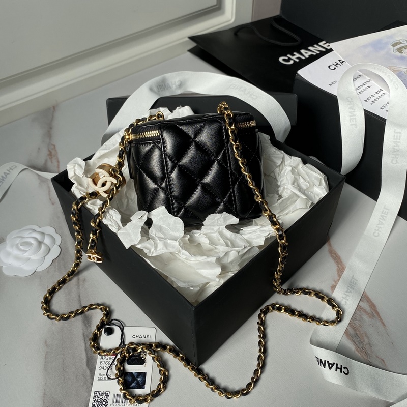 A Chane124A új kozmetikai táska A 3941 kicsi és igazán remek. A nagy értékű zománc logó és a dupla C-beállító csat a kiemelés. Egyre jobban szeretem ezt a kozmetikai táskát. Nagyon szép magával vinni. Bármilyen ruhával teljesen széppé tud tenni. Mérete: 11×8,5×7 cm