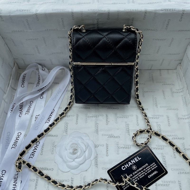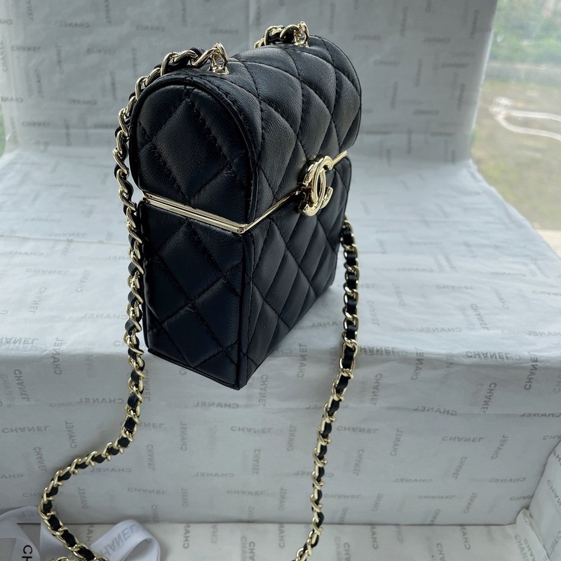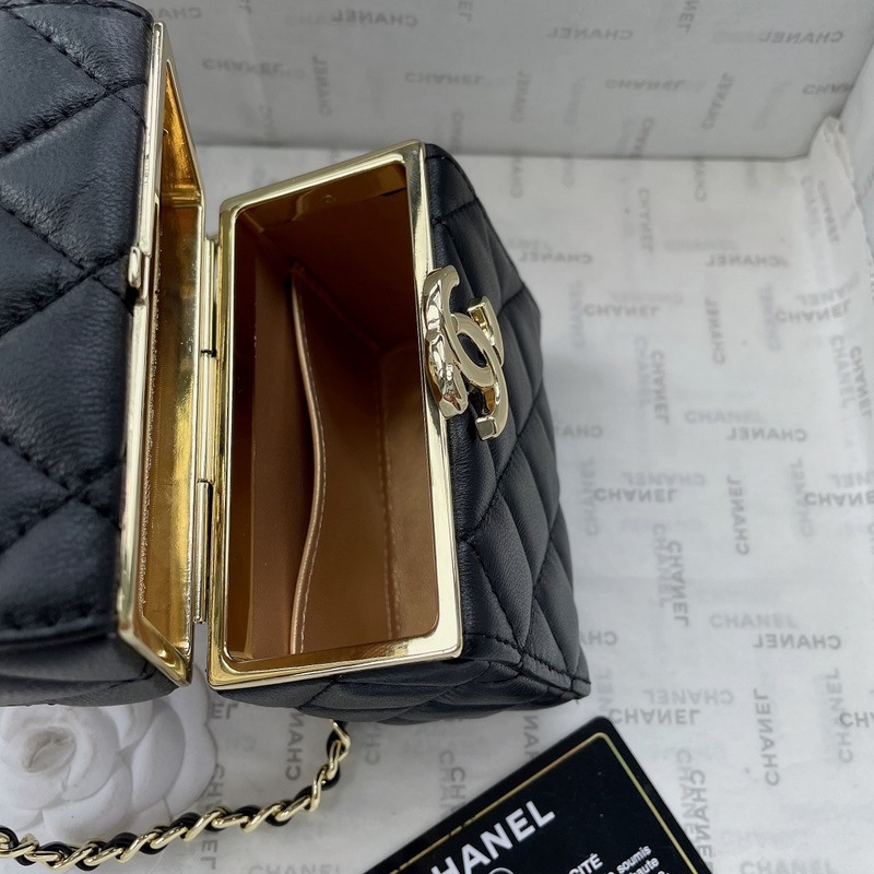 Az új doboztáska belsejében tükör van, kopásálló báránybőr arany hardverrel, imádom ezt a kis dobozt