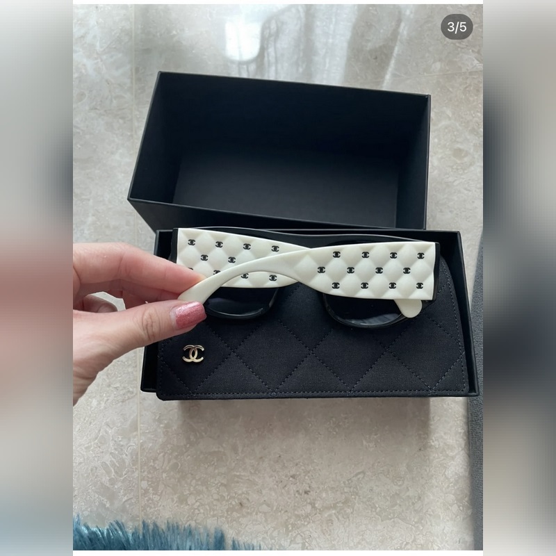 Ez a napszemüveg a Chanel 22s tavaszi és nyári kiegészítője. A templomok tele vannak gyémánt logóval, és nagyon Chanel vintage stílusúak. A fekete-fehér panda színkombináció tökéletes tavaszra és nyárra. CH9101