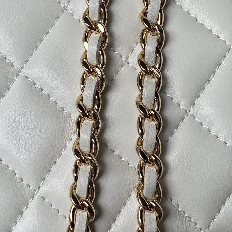 Chanel 23K láncfogantyús doboztáska A2199 világosarany fogantyú Nagyon szeretem ezt a dobozos fogantyút dupla C emblémával, nagy kapacitással, benne tükörrel a sminkhez