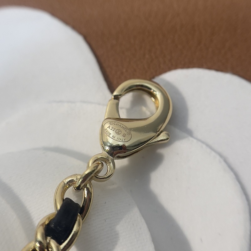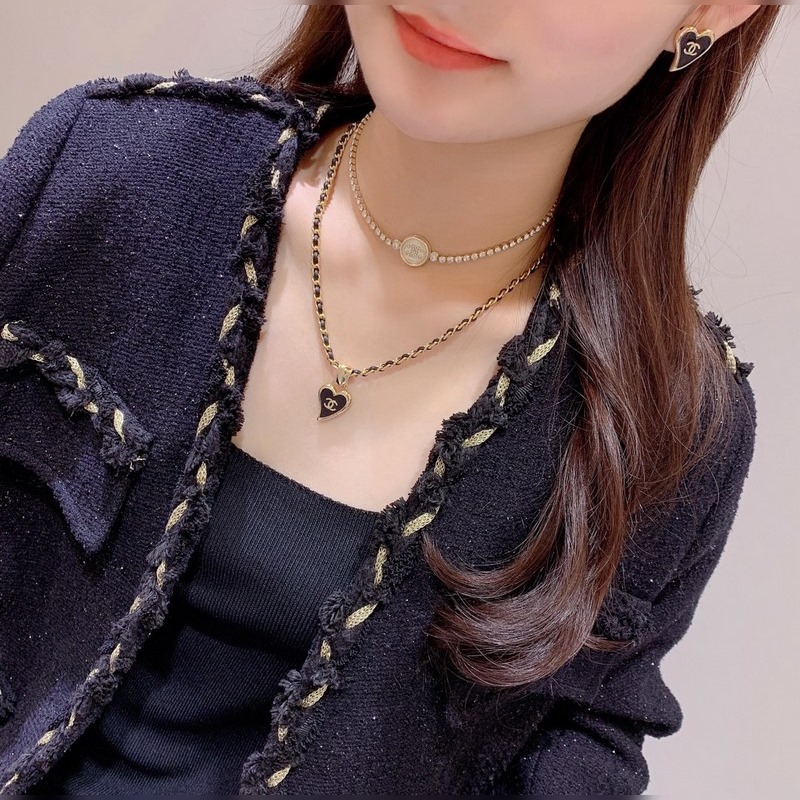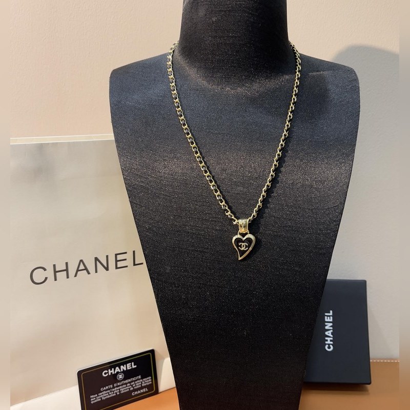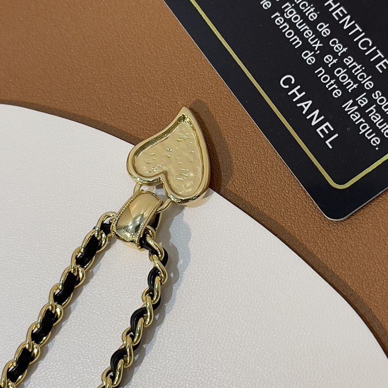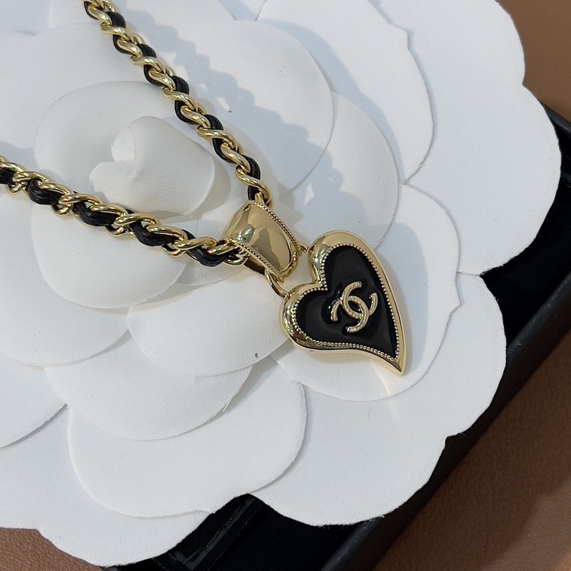 Az új szív nyaklánc fekete bőr arany láncot, fekete rendszerű üveget használ sárgaréz fém dizájnnal, és dupla C arany hardver mintákkal van díszítve. Az ívelt ív egyedi és retró érzést keltő.