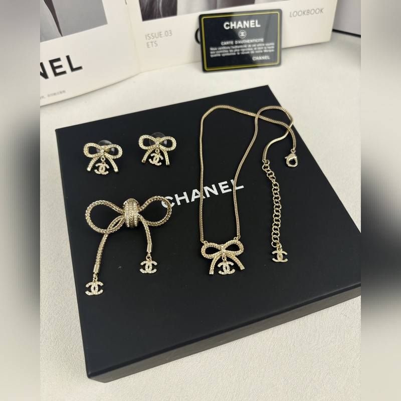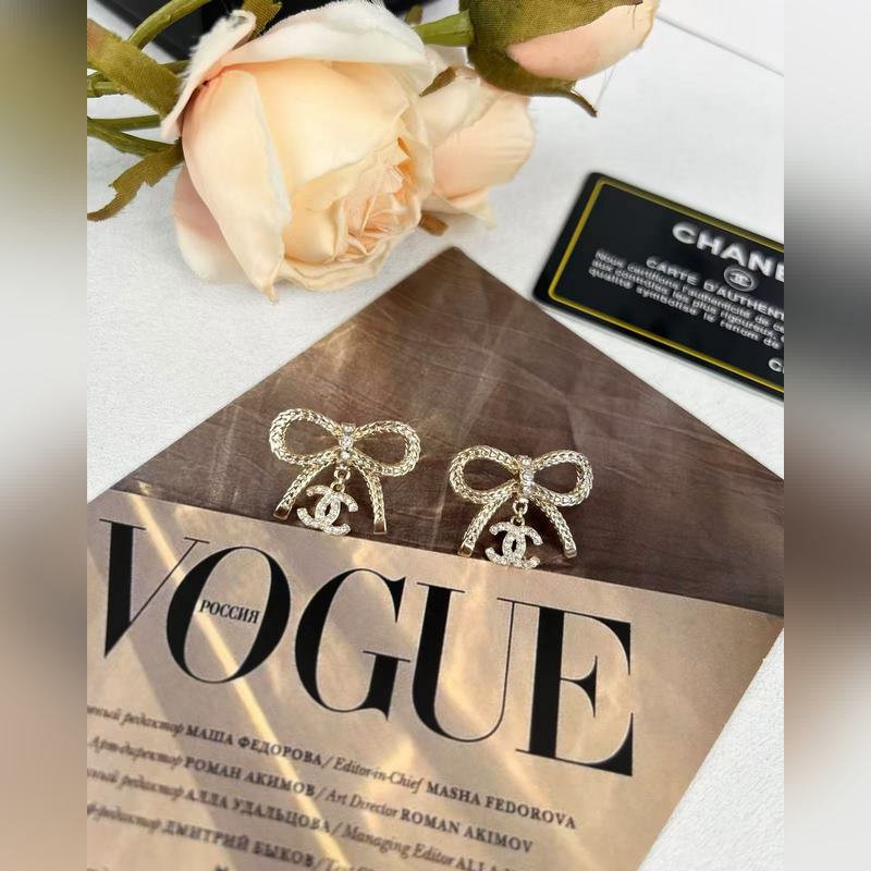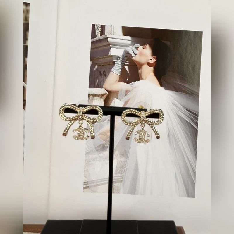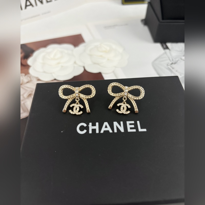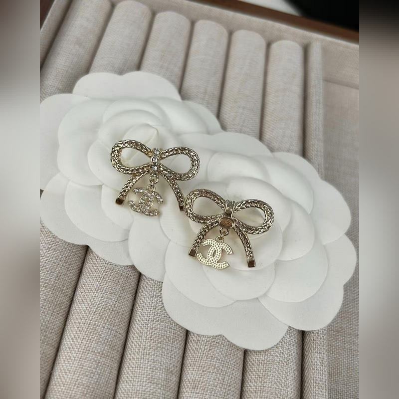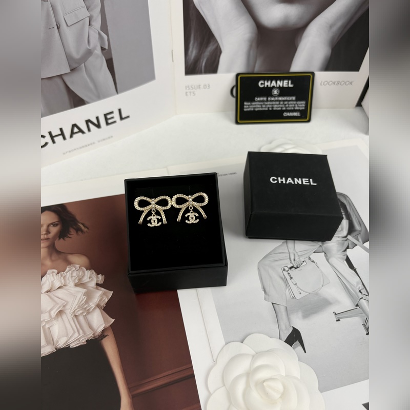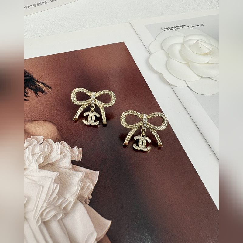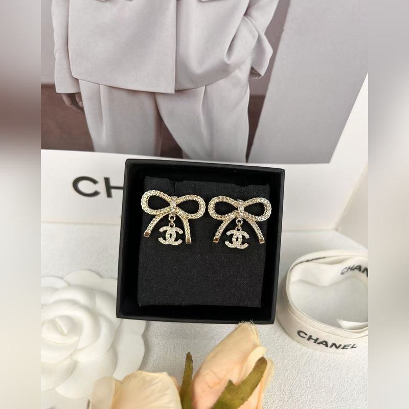 Chanel Bow dupla C teljes gyémánt medál fülbevaló