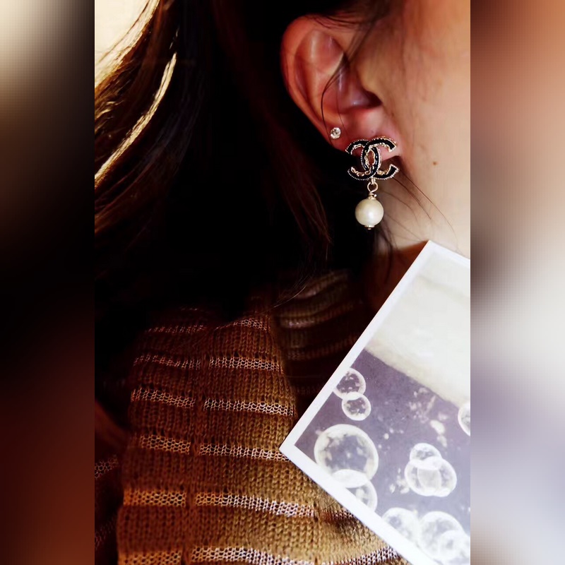 Gyári közvetlen értékesítés, eredeti minőségre javított minőség Chanel fekete olaj csepp gyöngy nyaklánc, lánc hossza 45 20cm hosszabbító lánc Chanel top replika 2023 legújabb frank szériás retro nosztalgikus fülbevaló