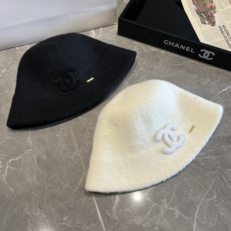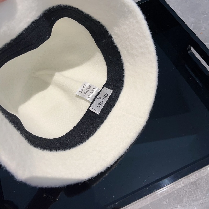 Chanel gyapjú vödör sapka, őszi és téli mosdókalap, fekete-fehér, fejkörfogat 57cm