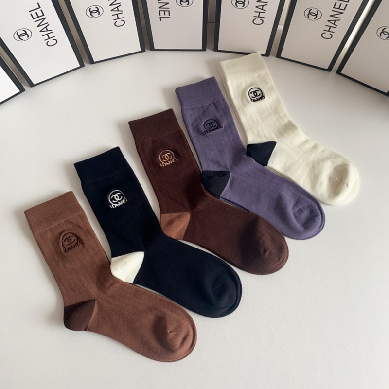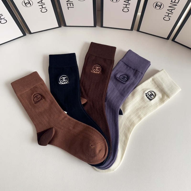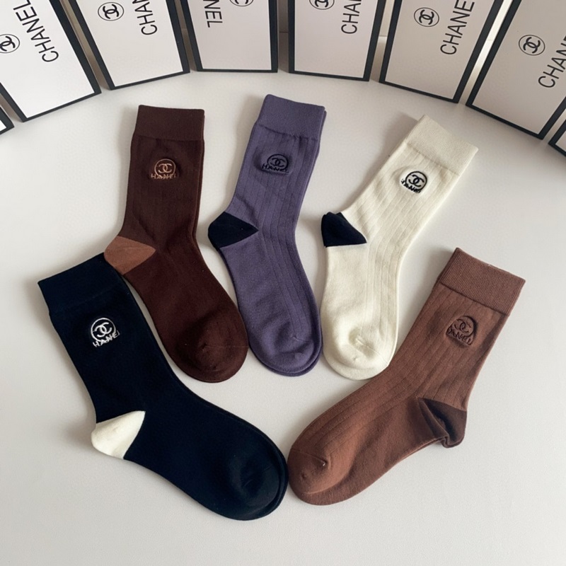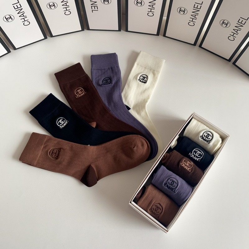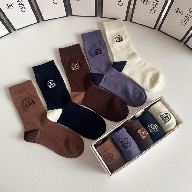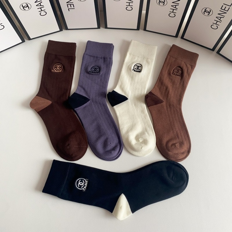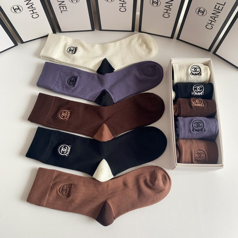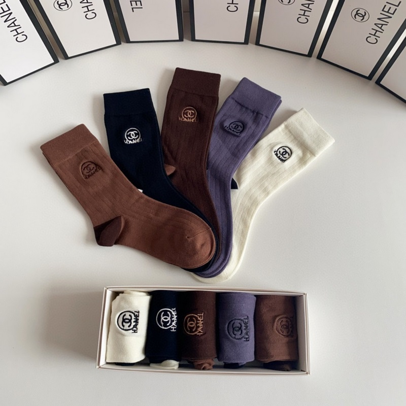 CHANEL új, Maillard-stílusú, közepes hosszúságú, hímzett kötegzoknii, öt pár egy dobozban, ellenszinkronizált csőzokni, nagy márka, kötelező darab a divatosok számára, rendkívül könnyen összeilleszthető