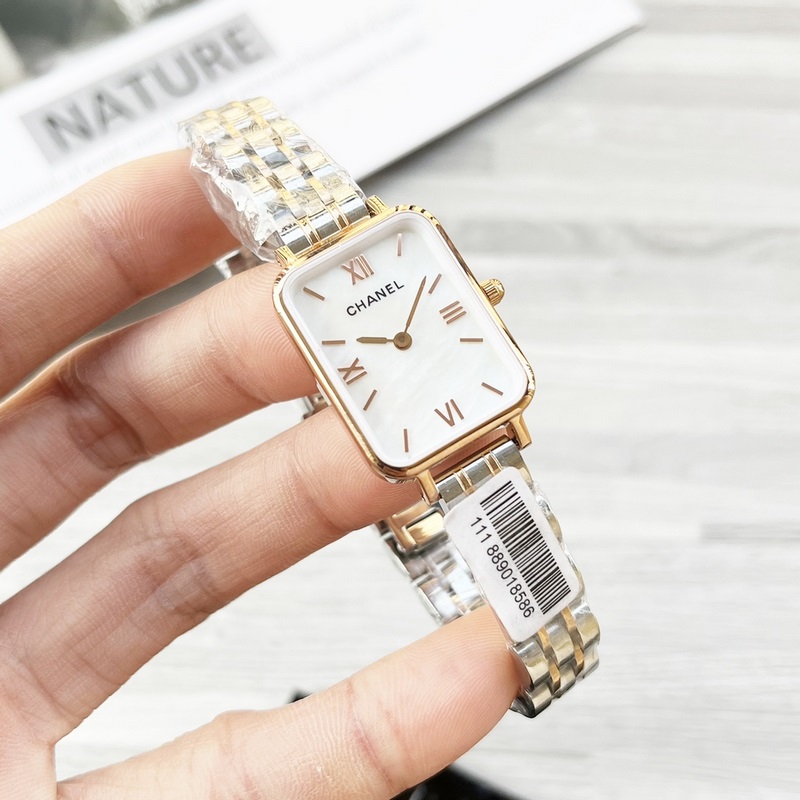 Chanel CHANEL legújabb színillesztés Modern klasszikus divattervezés A héjfelület négyzetes köre üveg galvanizálás Egyedi stílus bőrövvel Japán import kvarc mozgás pontos menetidő, méret 20×26mm Divattrend valós felvétel Minőség