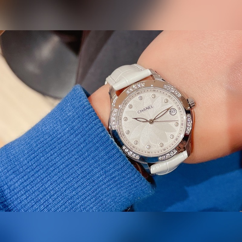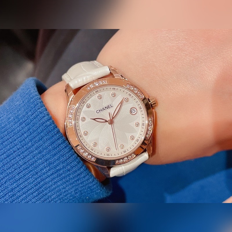 Importált kvarc szerkezetű 316L rozsdamentes acél ház Zafír karcálló üvegtükör Import borjúbőr szíj/kerámia rozsdamentes acél Átmérő 35mm vastagság 8mm Ezt az órát a nők szeretik, egyedi személyiségüket és elbűvölő stílusukat tükrözi különböző alkalmakkor
