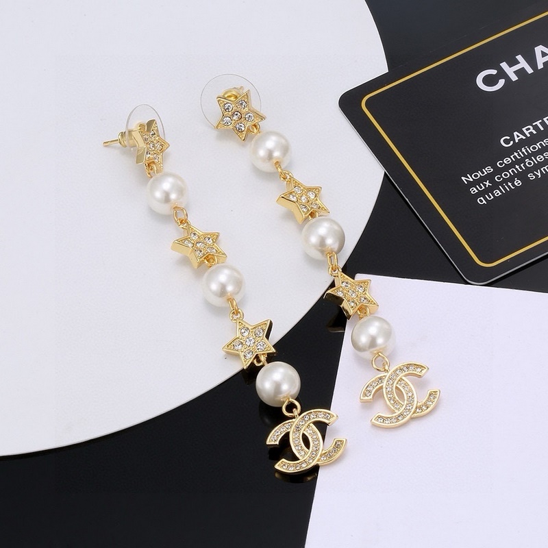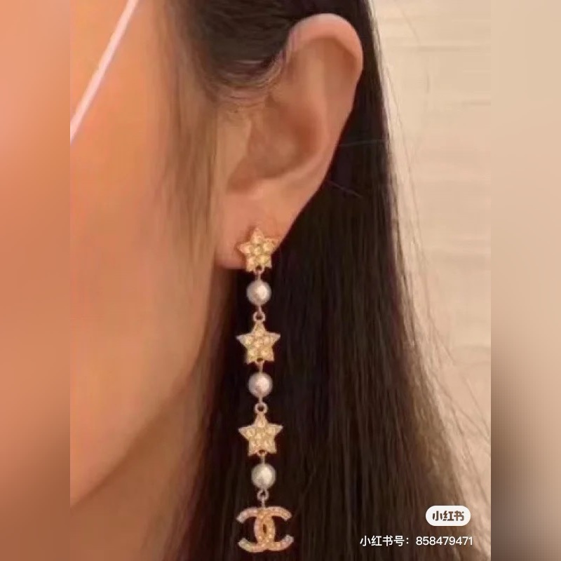 Chanel Xiaoxiang teljes gyémánt ötágú csillag, hosszú gyöngy fülbevaló fülbevaló klasszikus népszerű modell nemes és nagylelkű eredeti anyag ezüst tű egyszerű és elegáns kifinomult kidolgozás az arcformától függetlenül divatos magabiztos és visszafogott istennőnek kell kezdenie