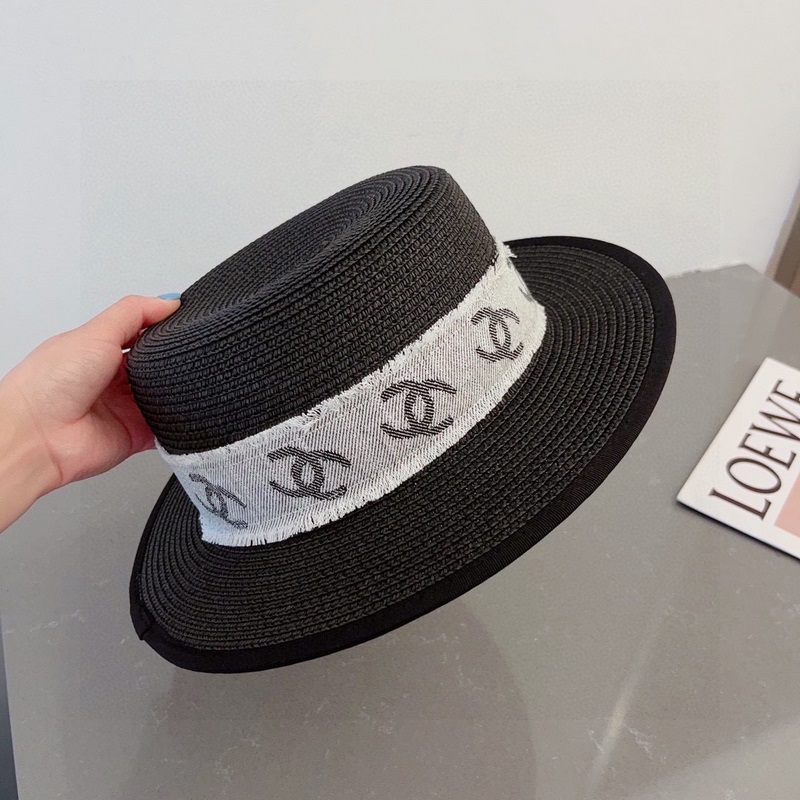 Chanel lapos szalmakalap, lapos szalmakalap, fej kerülete 57cm