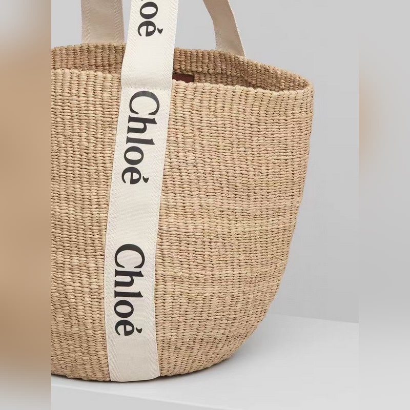 CHLOE nagy, fás kosártáska, fás szalaggal díszítve