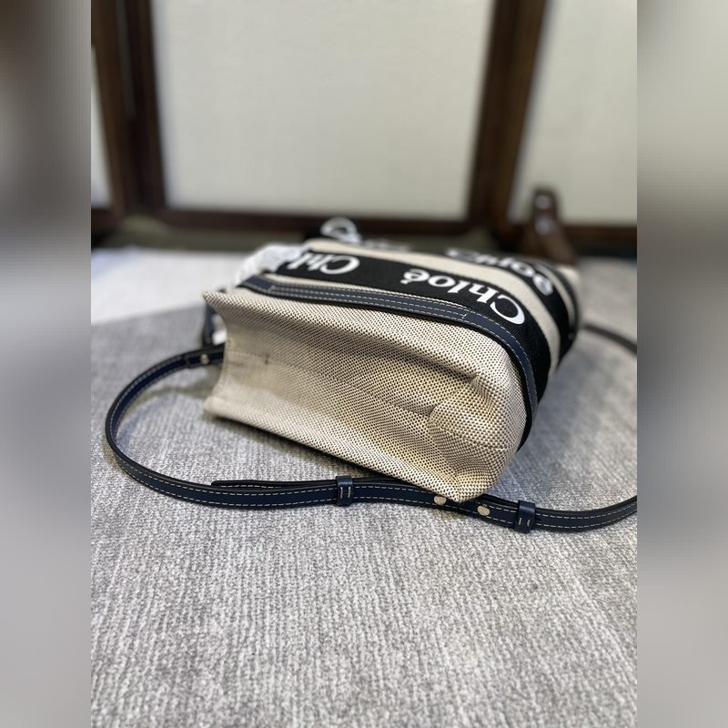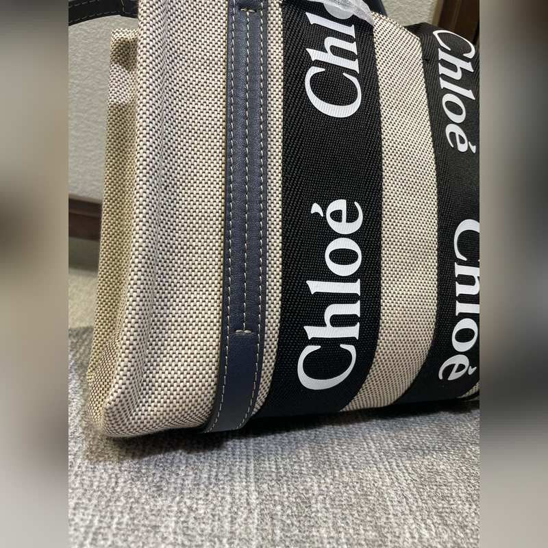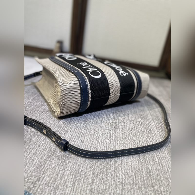 CHLOE woody Tote limitált kiadású éjkék, fekete hevederrel (vállpántos változat)