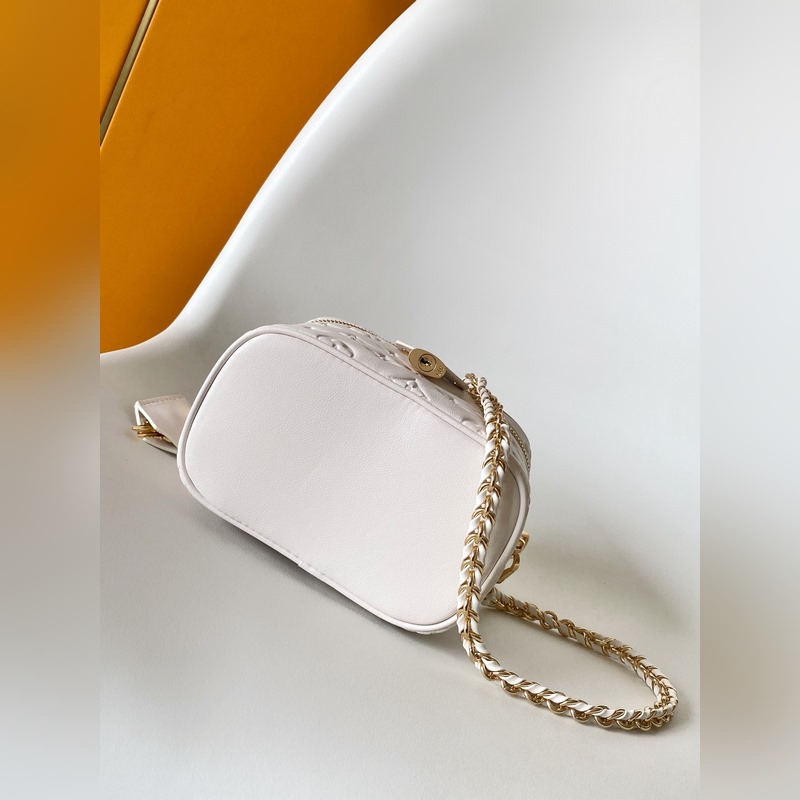 M25143 Fekete M25219 fehér felső Eredeti Dynamic Chip Ez a kis Vanity kézitáska bolyhos báránybőrből készült, és lágy és könnyű dizájnnal értelmezi Nicolas Ghesquière városi kézitáskák új értelmezését. A vakító LV lakat és bőr kulcstáska jelzi a márka identitását, a levehető fonott bőrlánc pedig kényelmes kézben, vállon vagy keresztben hordozható. 19,0 x 13,0 x 11,0 cm (hossz x magasság x szélesség)