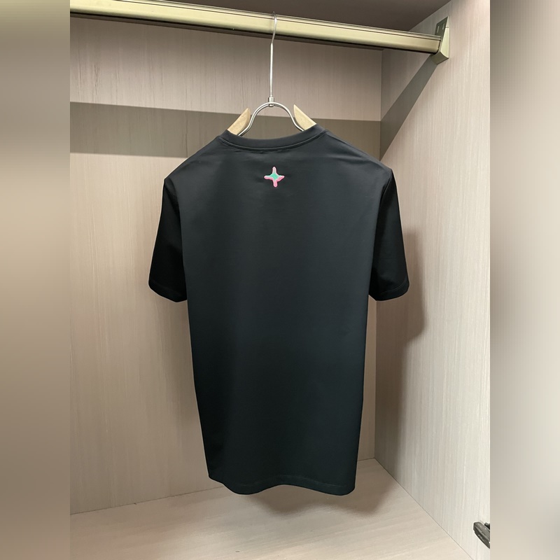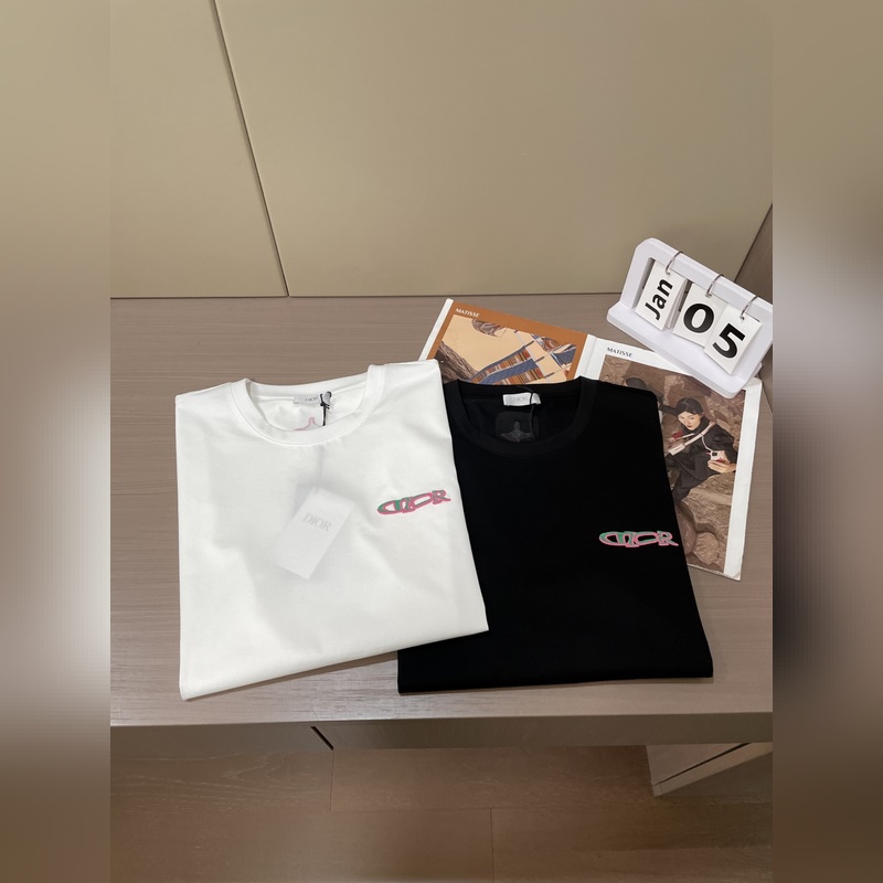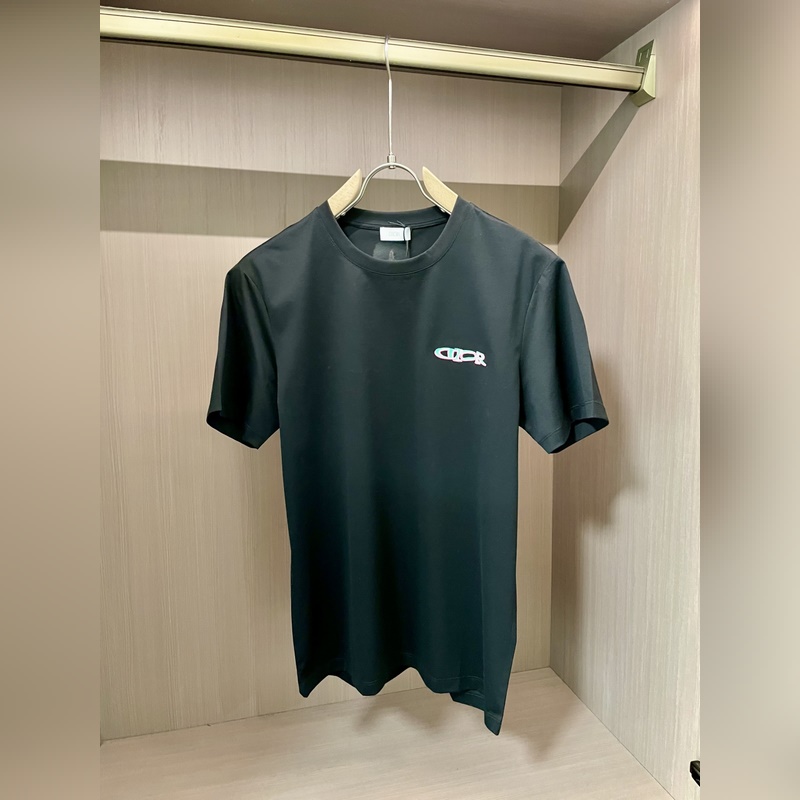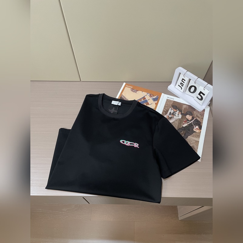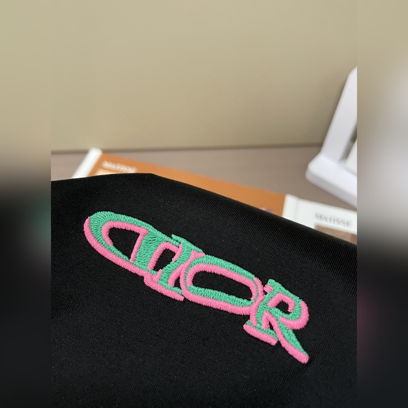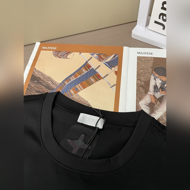 DIOR 2025 tavaszi-nyári új colorblock betűvel hímzett rövid ujjú póló; Szinkronizált ellenanyag, Dior és Lewis Hamilton együttműködési új termék, absztrakt colorblock hímzés, színes blokk betűhímzés a mellkason, csillag mintás hímzés a háton, egy luxus ruhadarabnak egyedi tervezési stílussal kell rendelkeznie. Raktáron elérhető, siess