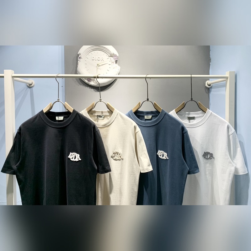 Ez a póló 100% pamut dzsörzé anyagból készült, mosott, majd formázott, 310 gramm súlyú, a mellkason egy háromdimenziós és jellegzetes Dior Charm logóval van átfedve, átértelmezve a klasszikus White logót, hogy nyári megjelenést teremtsen.