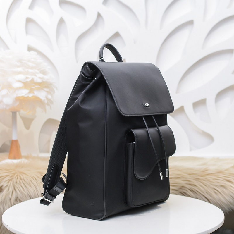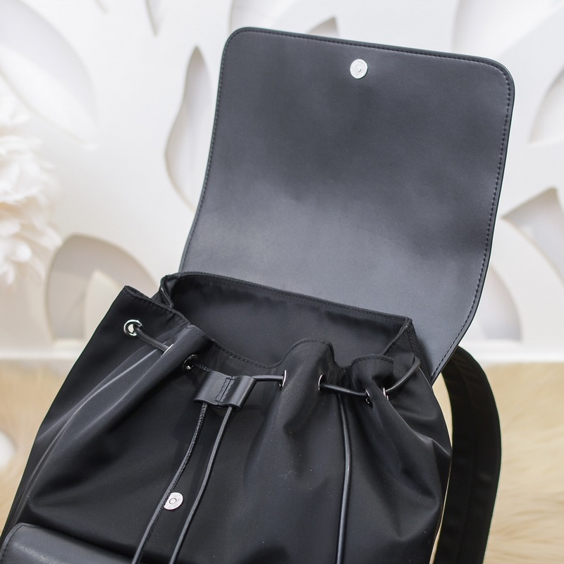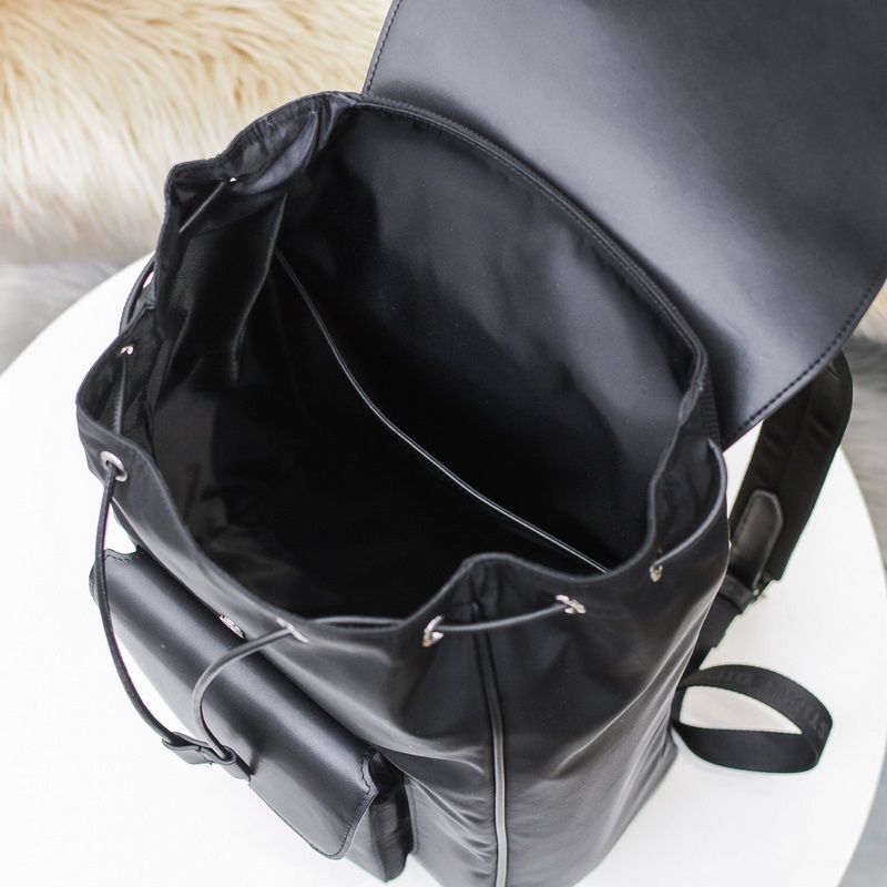 Sima borjúbőrből, vízálló nylon anyaggal. Remek érzés. Egyszerű forma. A marhabőr szárny elrejti a húzózsinóros záródást. A szárnyat logó díszíti. Az elején egy zseb található. Állítható, párnázott nylon pántok. A belső tér nagy. A stílus újszerű, sokoldalú és hétköznapi. Divatos és elegáns. Jól nézzen ki az utcán.