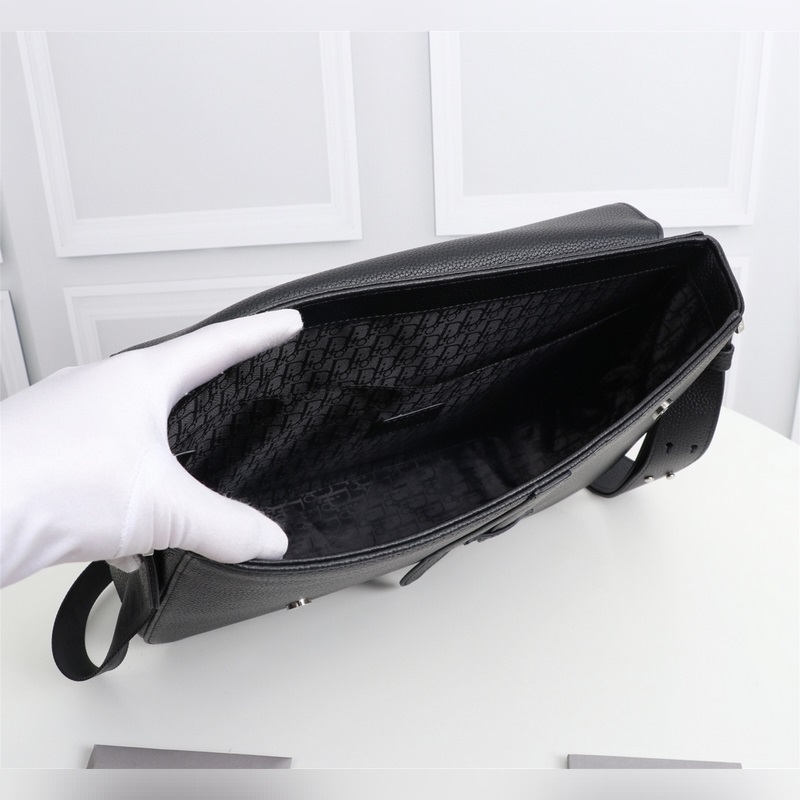 Fekete szemcsés borjúbőrBézs és fekete ferde nyomat Elülső sárgaréz fémbevonatú “DIOR” signatureFelzárós Belső foltzseb “DIOR” aláírással. Állítható bőr és pánttal ellátott bőr és pánt váll vagy keresztben