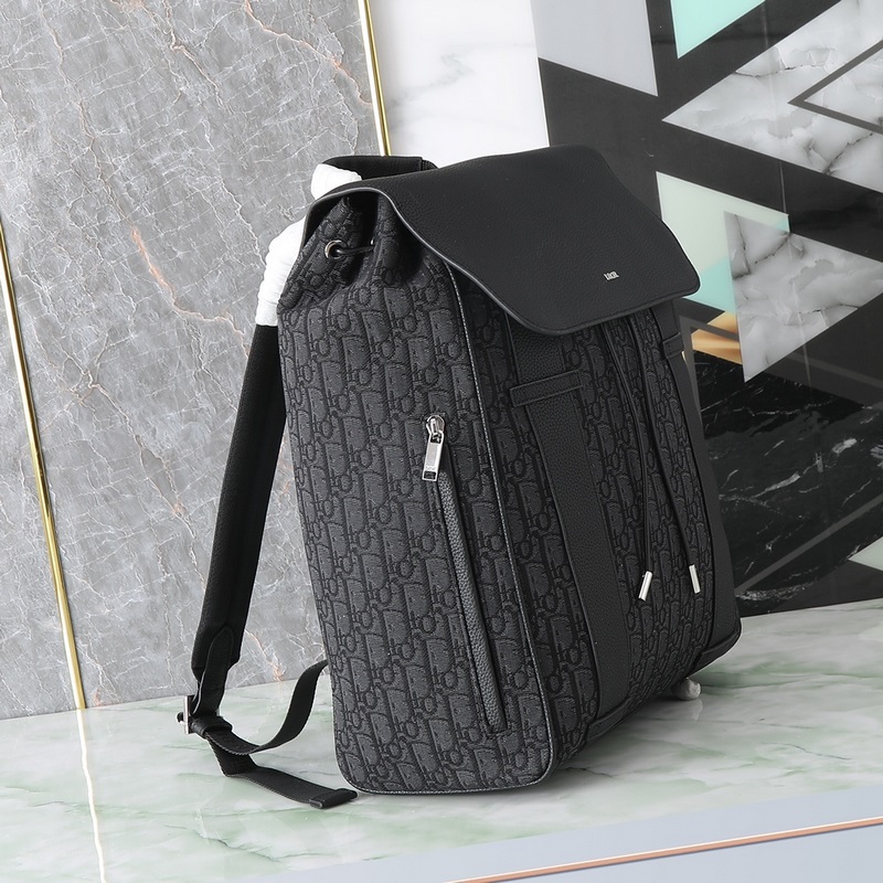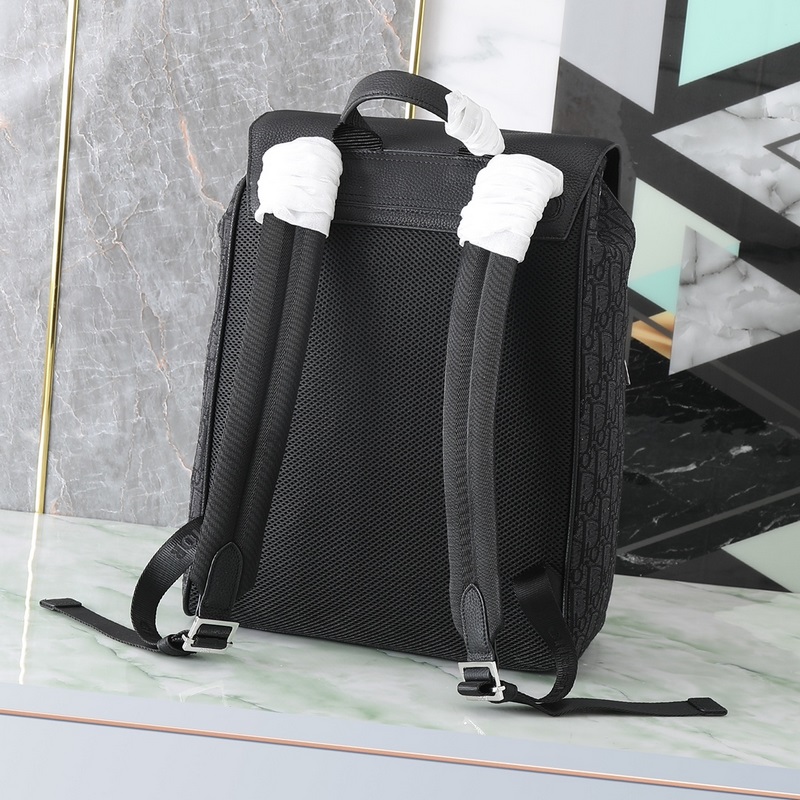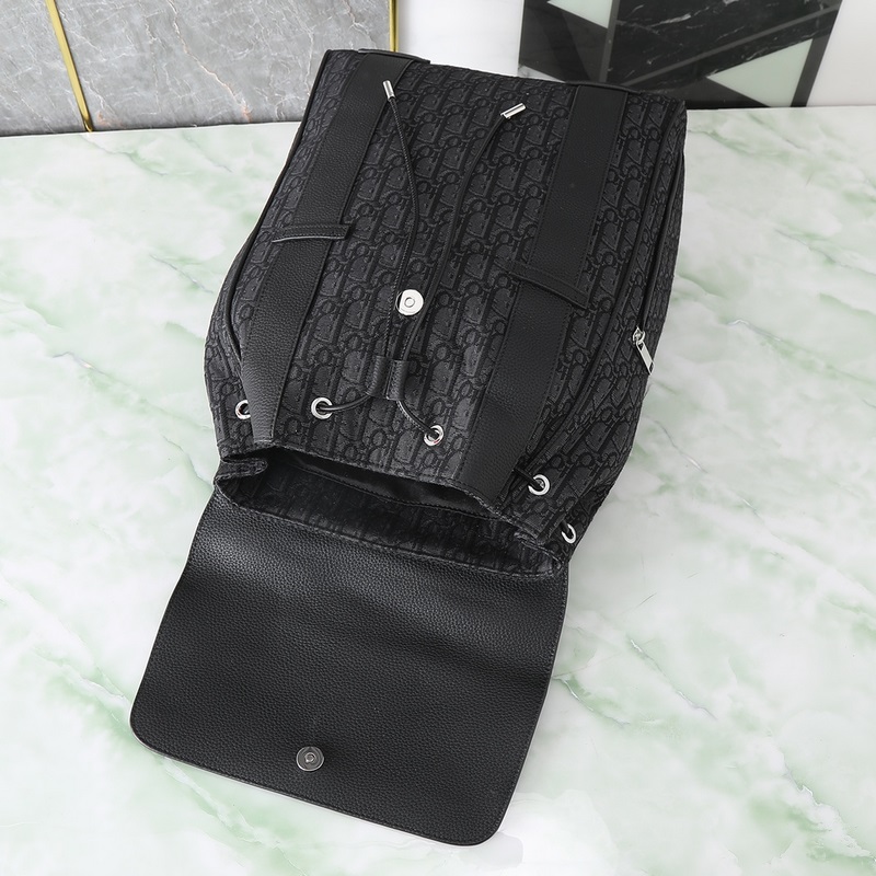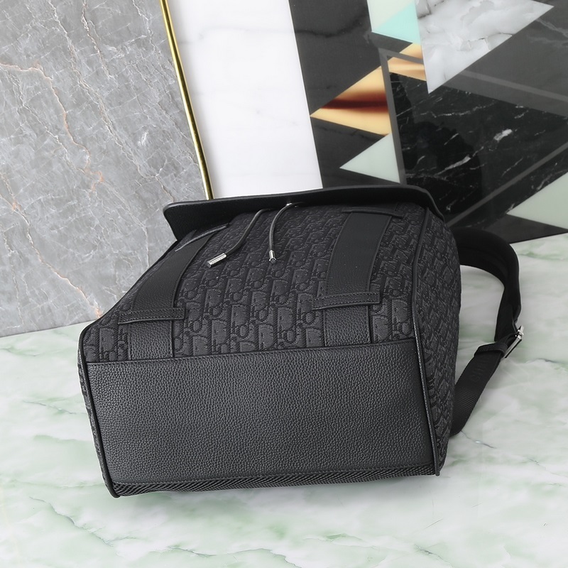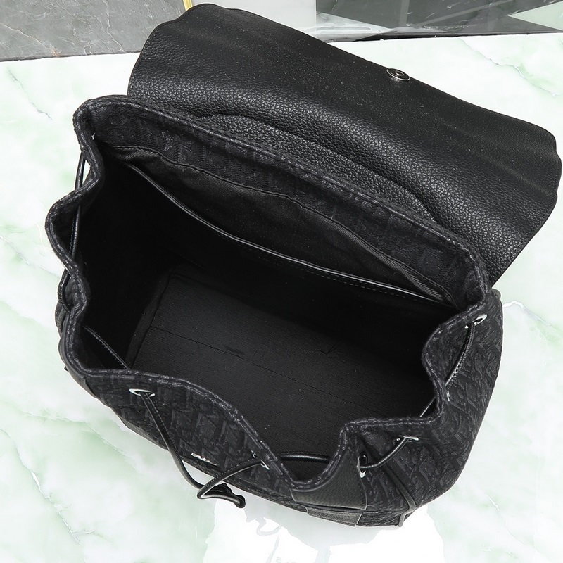 Motion fekete Dior Oblique fekete jacquard és fekete sima borjúbőr hátizsák, Dior gumi felület kívül, Dior logó melegbélyeggel a belsejében 1 belső lapos zseb, fekete borjú állítható nyél fekete borjú strappkins és kézi hordozható
