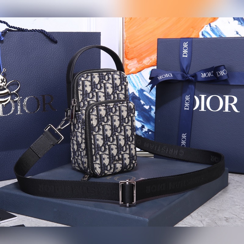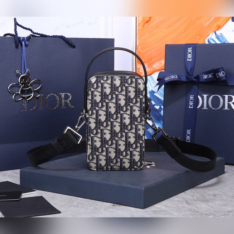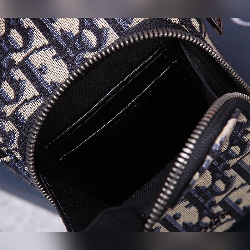Kivehető és állítható “Christian Dior” logó nejlon jacquard és fekete szemcsés borjúpánt különféle mobiltelefonok befogadására alkalmas iPhone 11 Pro Max méretig