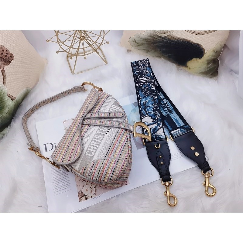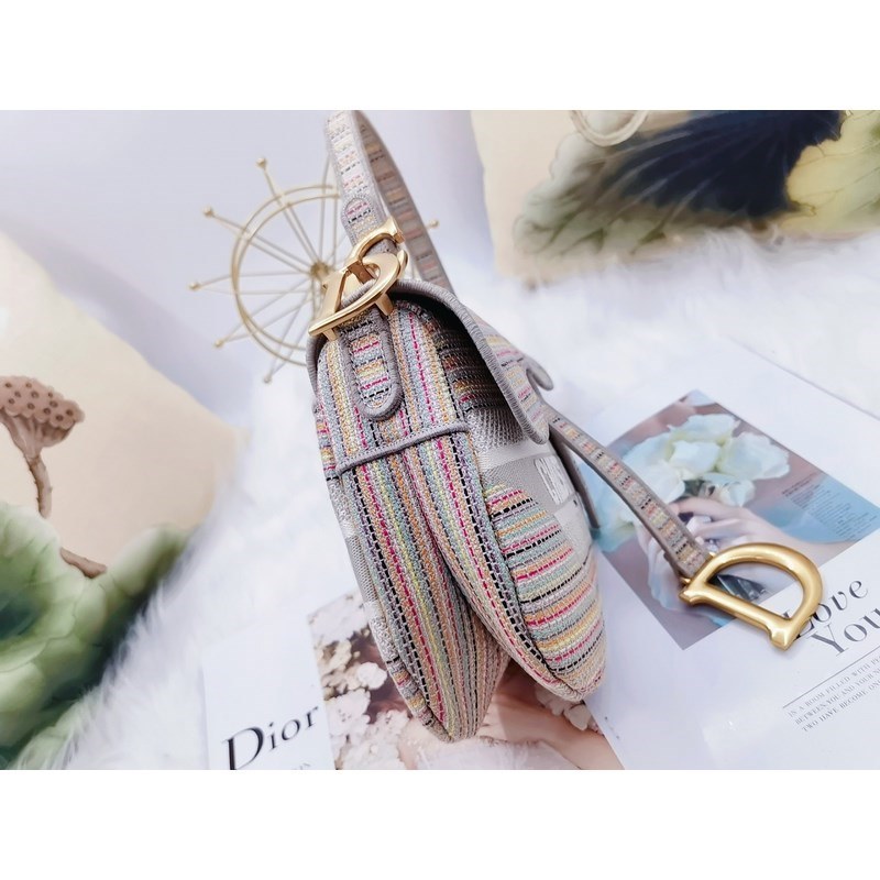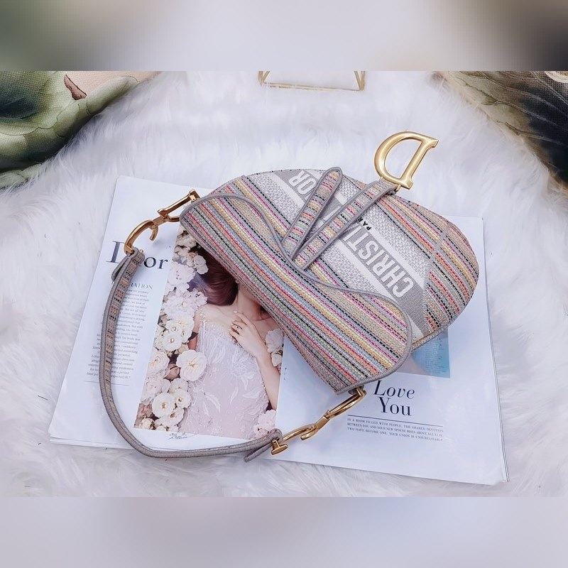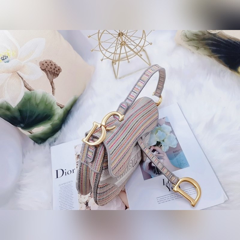 DIOR új mintás színes csíkos nyeregtáska