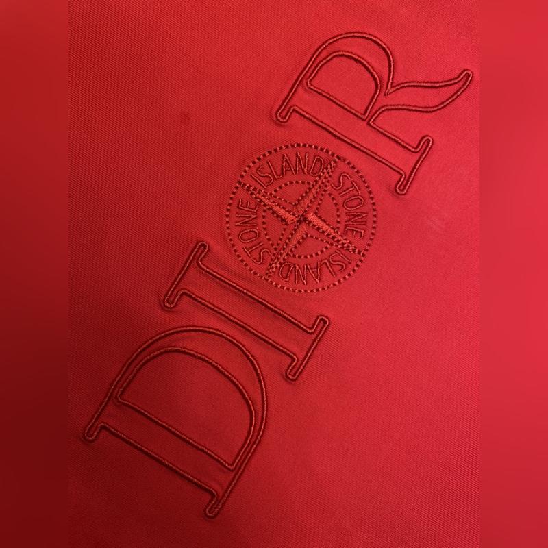 Dior, AND STONE ISLAND limitált kiadás, kiemelve a közös sorozat logóját, a Stone Island klasszikus sztárja és a Dior márka logója kiegészíti egymást. Piros pamutdzsörzéből készült, tonális DIOR AND STONE ISLAND hímzéssel és fonott díszítéssel az ujjakon. A stílus klasszikus, és farmernadrággal is viselhető a kifinomult és lezser megjelenés érdekében. Uniszex