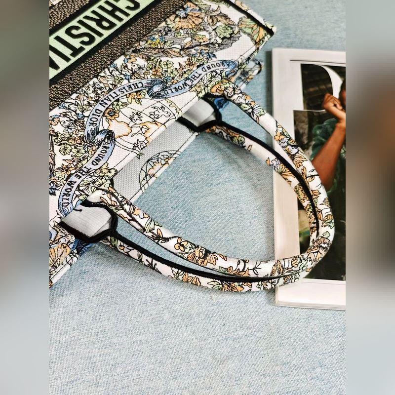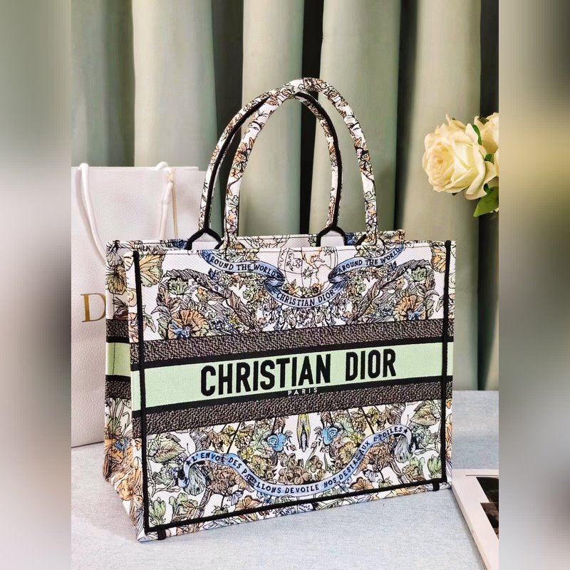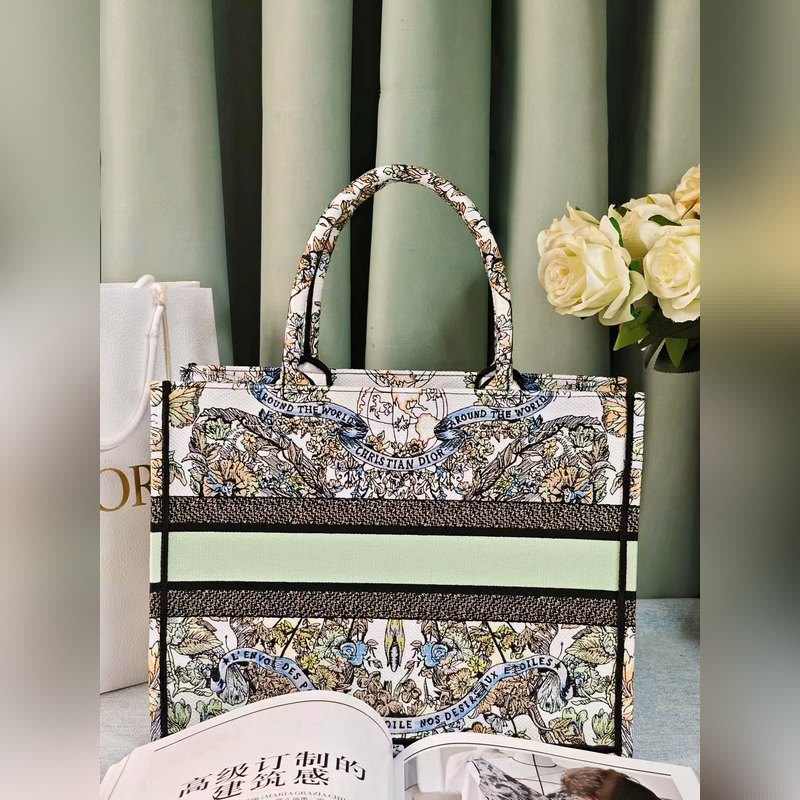 Autentikus új zöld pillangóeffektus A Maria Grazia Chiuri, a Dior női kollekcióinak kreatív igazgatója által tervezett könyves táska a Dior esztétikájának alappillére. A zöld és sokszínű Butterfly Around The World motívummal hímzett, a kollekció jellegzetes pillangójával, Lenvol des papillons dévoile nos désirs aux étoiles felirattal díszítve, és minden napi szükségleted elfér benne. A közepes modell elülső részén a Christian Dior Paris jelzéssel tisztelegve, kézben vagy vállon is hordható.