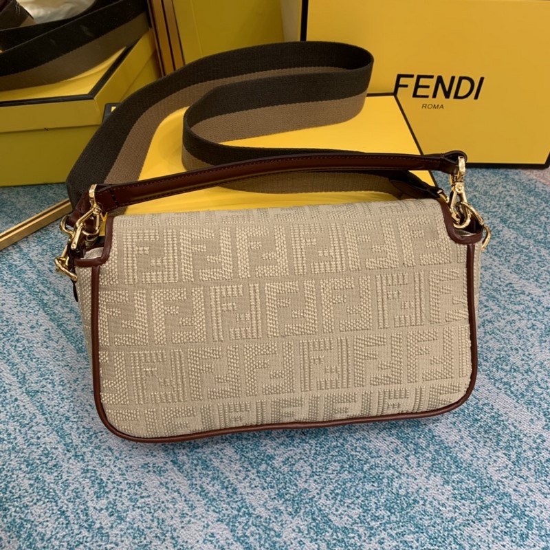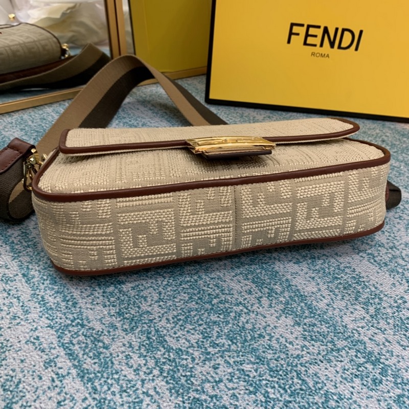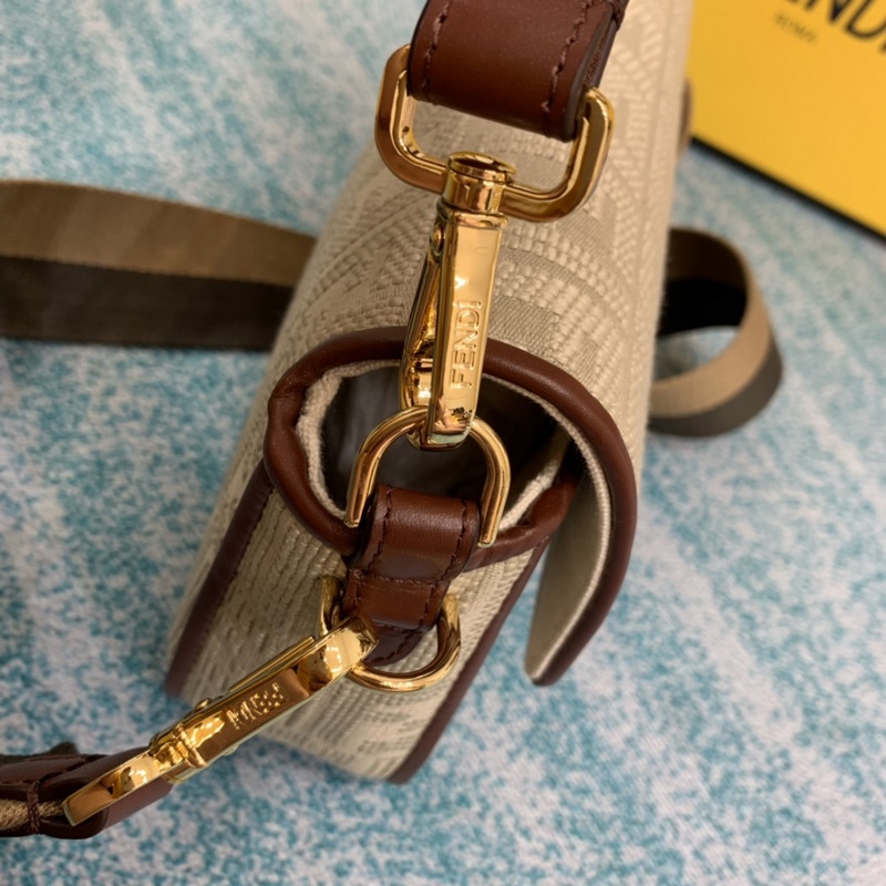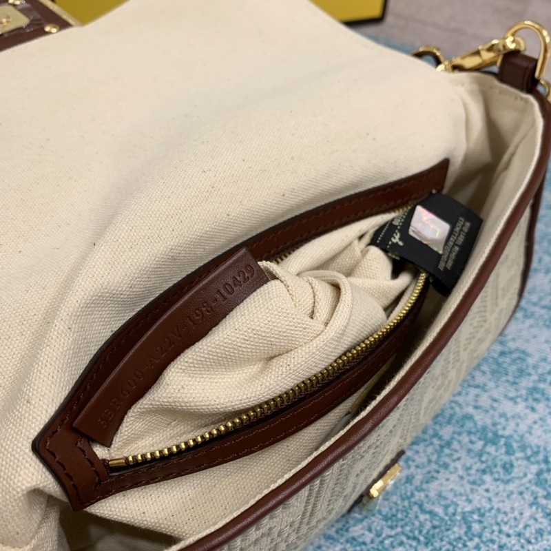 Kézben vagy keresztben hordható Bézs szövet hímzett FF mintával Aranybarna bőrrészletekkel díszítve Pequin szövet vállpánt Arany fém alkatrészek ☆ Szám: S 8 Emige2R6cm Szám: S BD96181200