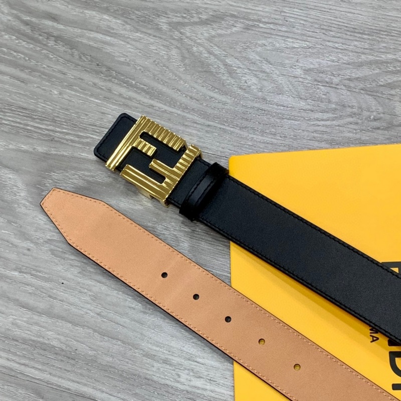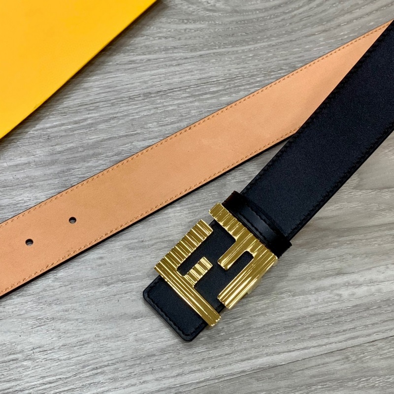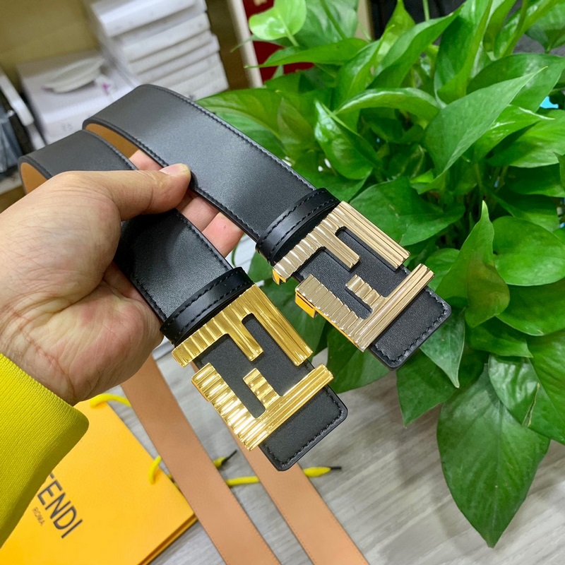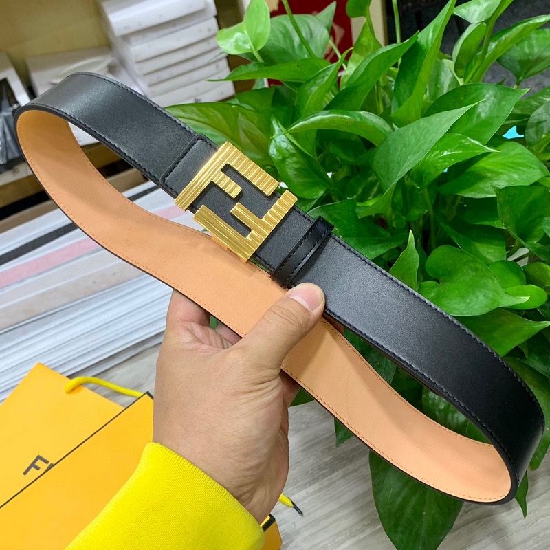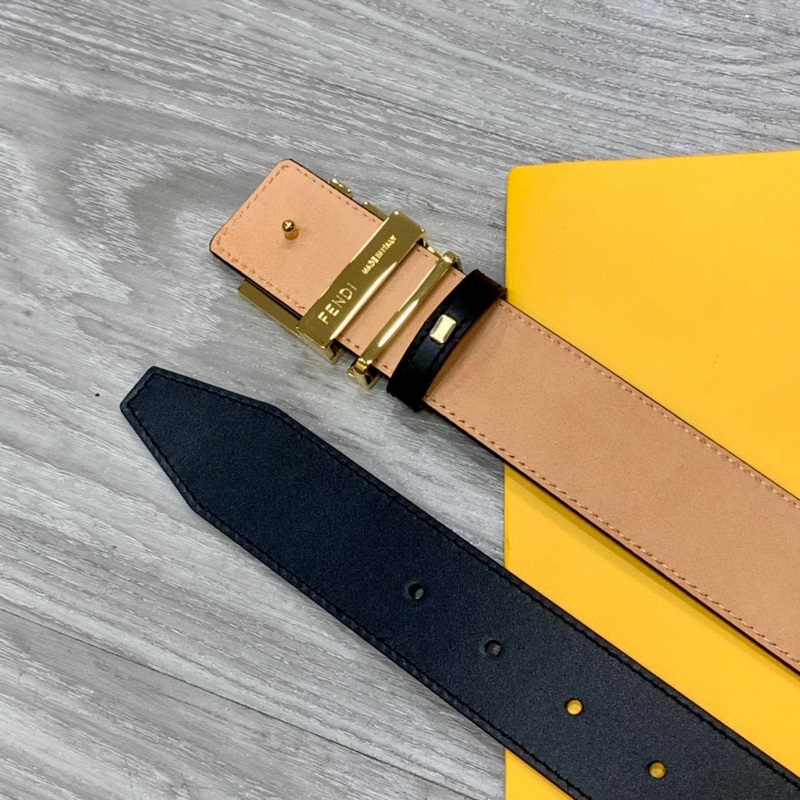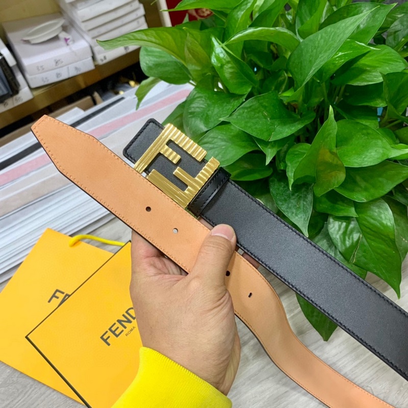 FENDI pult azonos stílusú 3,8 cm szélesség kétoldalas szőrrétegből készült marhabőrből, klasszikus FF acélcsatos férfi öv trendi és divatos alkalmi és sokoldalú minőségbiztosítás