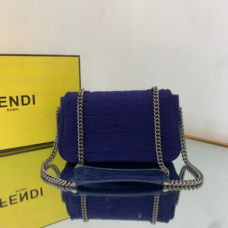 FENDI közepes kézitáska láncos vállpánttal, piros high-tech hálós anyaggal, 3D texturált FF mintával és FF csattal