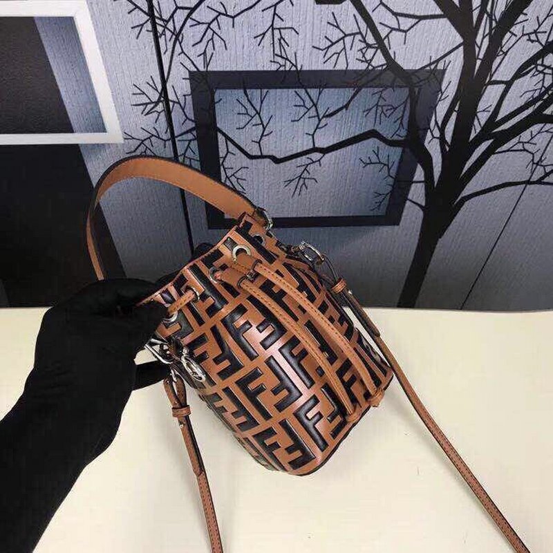 FENDI soul design mini vödörtáska marhabőr dombornyomott ‘istennő kedvenc eleme’ vákuumozott hardver méret 12 x18 x10cm stílusszám: 9233 szám: MX9618670