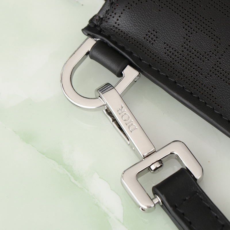 Ez az A5 tengelykapcsoló egy elegáns kiegészítő, amely a Dior elegáns és kitűnő bőrkidolgozását mutatja be. A fekete Oblique Galaxy nyomott marhabőrbőrből készült, kivájt, sima marhabőr bőrt fényvisszaverő béléssel párosítják, így ferde nyomathatást keltenek, kiemelve a stílust. Az elején Dior logó díszített, a cipzáros rekeszben pedig egy patch zseb található a kártyatartóknak. Levehető bőrszíjjal felszerelve kézben tartható, vagy a kézitáskába tehető.