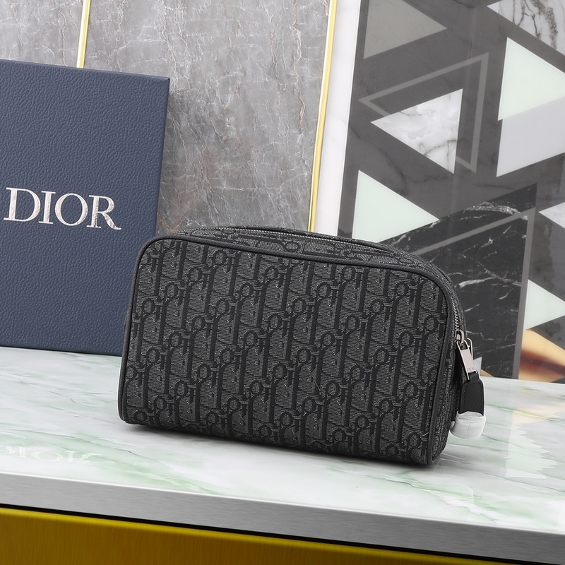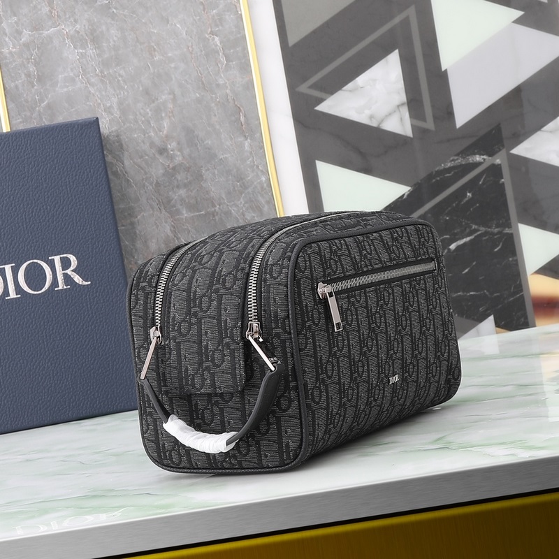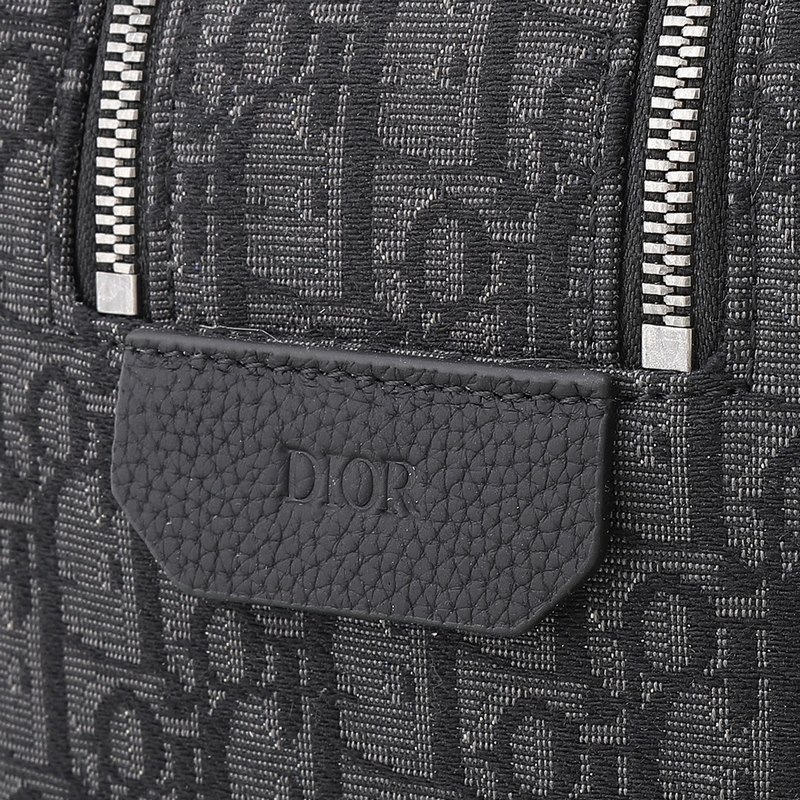 Ez a piperetáska a funkcionalitást a minimalista dizájnnal ötvözi. Fekete, ferde nyomatú anyagból készült, tónusos, szálkás borjúbőrrel díszített, elöl pedig Dior-jelzés díszíti. Egy cipzáras zsebbel, egy tágas cipzáros rekesszel és két elülső zsebbel rendelkezik. Bőr fogantyúkkal rendelkezik, így kézben hordhatja vagy különféle táskákba csúsztathatja.