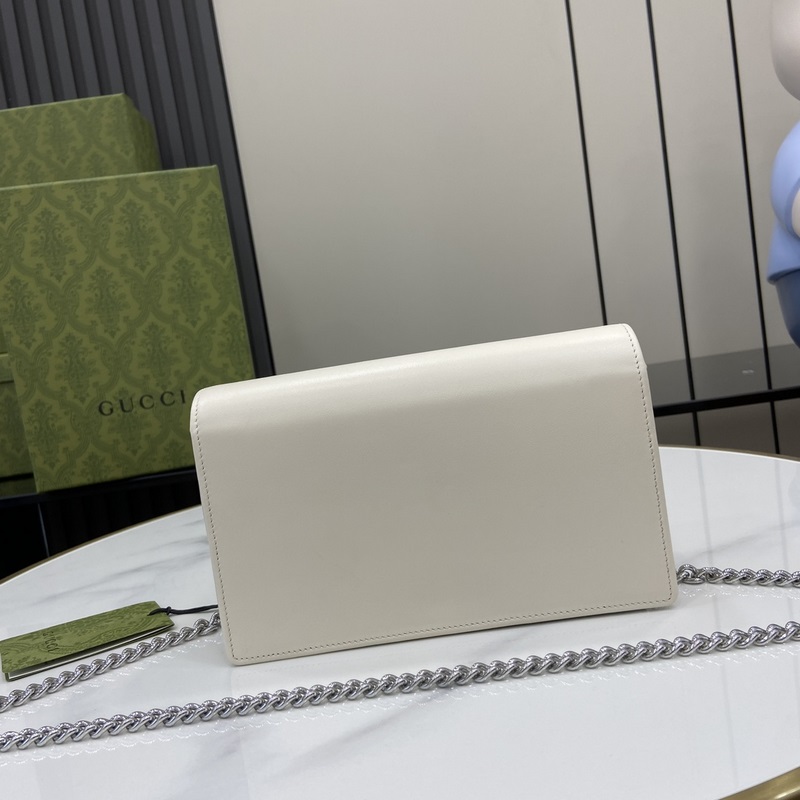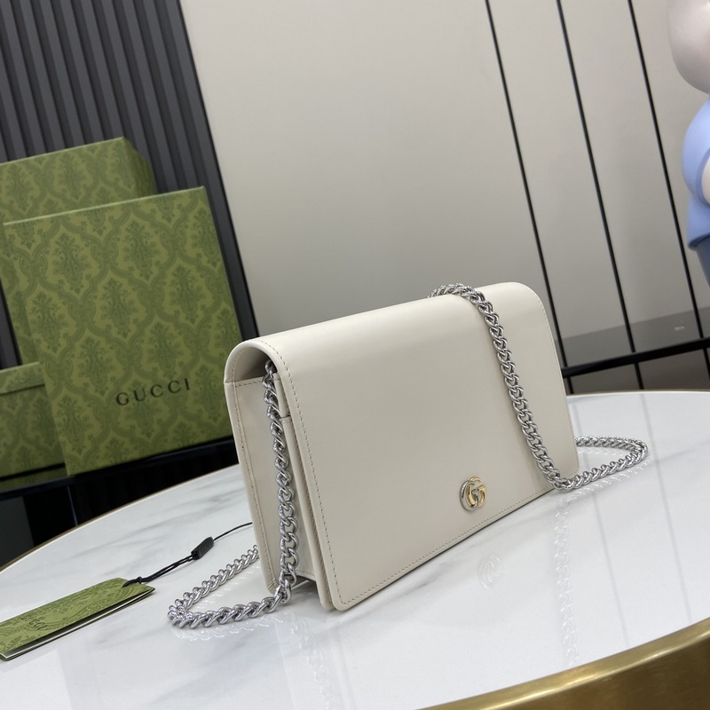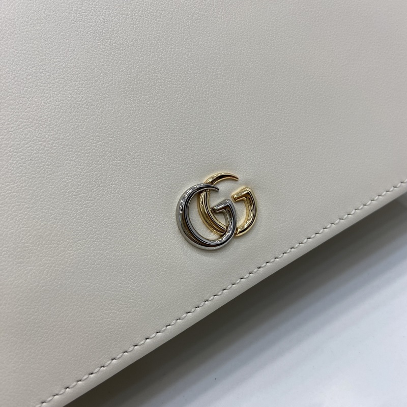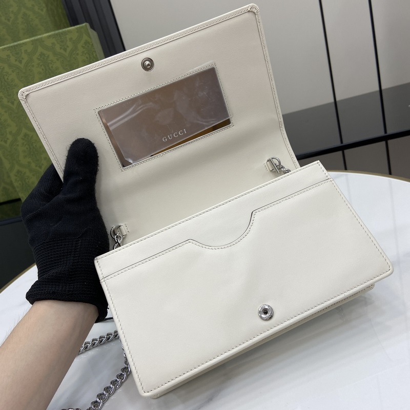 Új GG Marmont pénztárca láncon. A márka ikonikus mintája változatokban gazdag, de klasszikus szimbolikus elemmé alakul, színesítve az új sorozatot. Ez a láncos pénztárca fehér és ébenfa GG Supreme vászonból és fehér bőrből készült, kéttónusú klasszikus dupla G logóval díszítve. Fehér és ébenfa GG Supreme vászon, fehér bőr csővezeték, világos arany tónusú vasalat, moaré szövet bélés, kéttónusú dupla G, belső: hat kártyarekesz, egy lapos zseb, egy cipzáras zseb és egy nyitott rekesz, tükör, láncos táska pánt, nyomógombtartó, súly: kb. 0,42 kg.