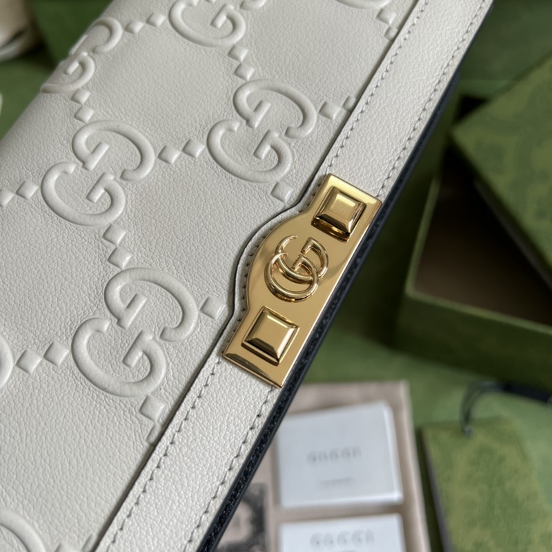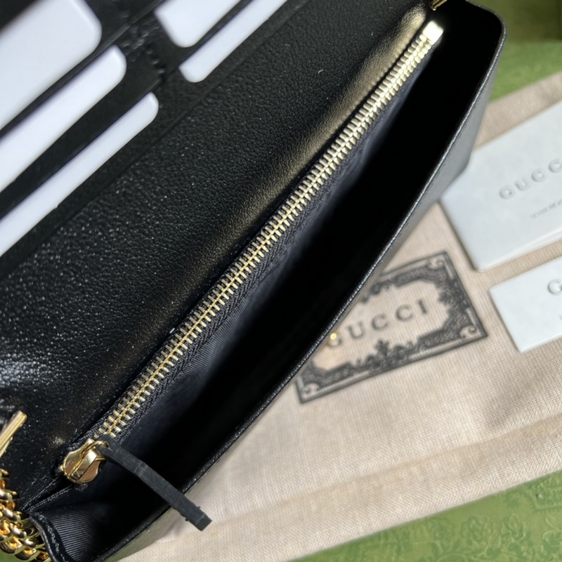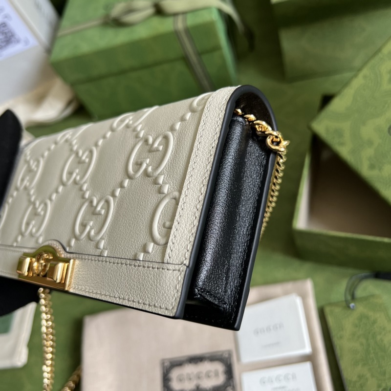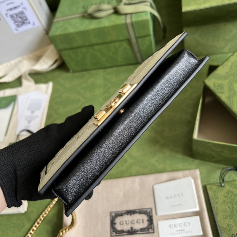 《Eredeti bőr zölddobozos csomagolás teljes készletével》 GG láncos pénztárca·A márka elmúlt hat év során faragott kortárs klasszikus elemei modern dizájnrészletekkel ötvözve egy sor kiemelkedő alkotást alkotnak. Ez a pénztárca ezt a koncepciót folytatja, a klasszikus GG mintát alkalmazva avantgárd szegecsekkel, modern hangulatot árasztva a retro formavilágban. Részletek elrejtése · Világoskék GG bőr sötétkék csövekkel · Dupla G és szegecsekkel · Viszkóz bélés · A Gucci címkével ellátott kiválasztott termékként ez a termék támogatja az NFC technológiát, amely segít ellenőrizni az eredetiséget és élvezni a digitális innovációs élményt. 6 kártyarekesz · 1 cipzáras zseb · 1 nyitott zseb · Láncos vállpánt (58 cm magas) · Pattintható gombos záródás · Súly: kb. 0,32 kg