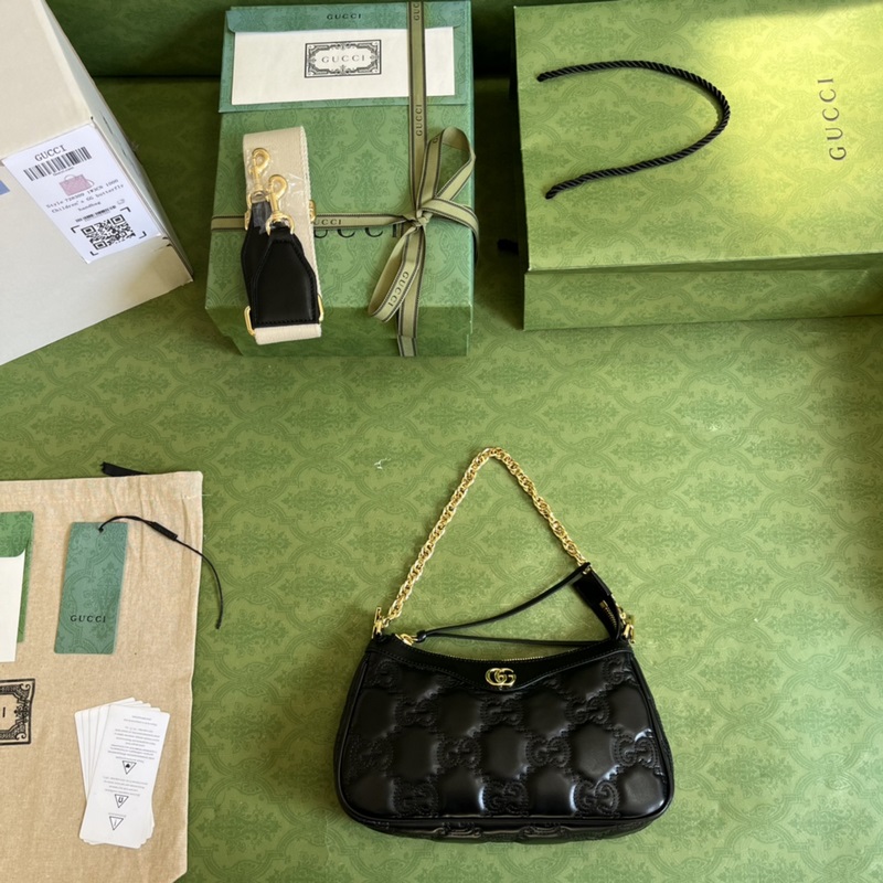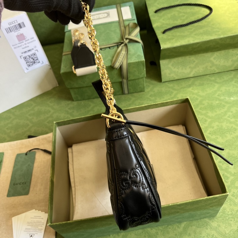 Az 1046-os bőrtáska a Ház jellegzetes anyagának lágy értelmezése. A texturált GG motívum számos táskán kel életre, köztük ezen a fekete bőrtáskán is. Az előlapon található Double G hardver egy kis House-identitást ad a dizájnhoz. Fekete Levehető vállpánt: elefántcsont nylon és arany tónusú fém.