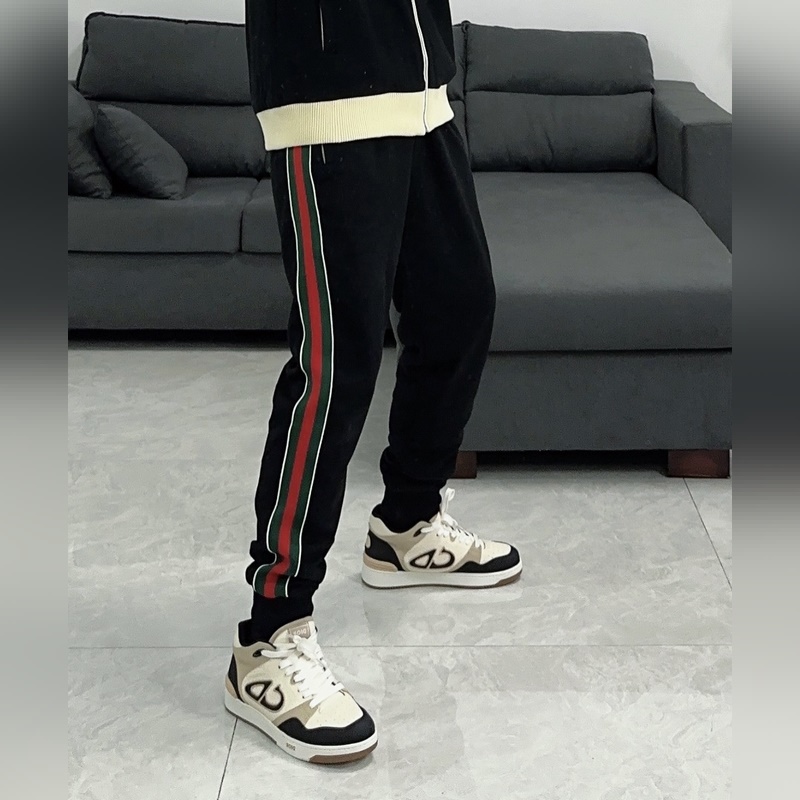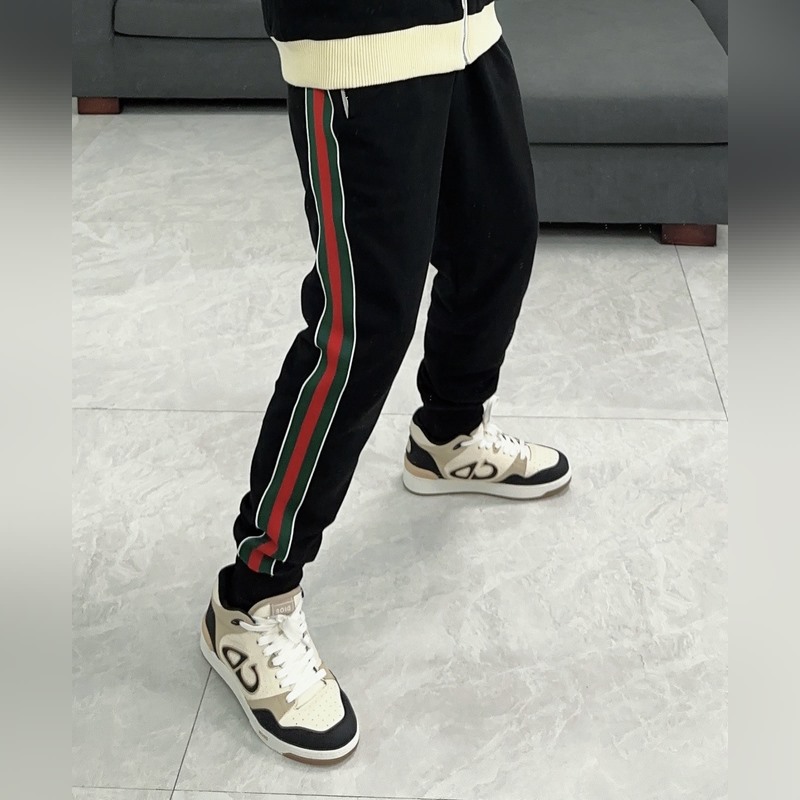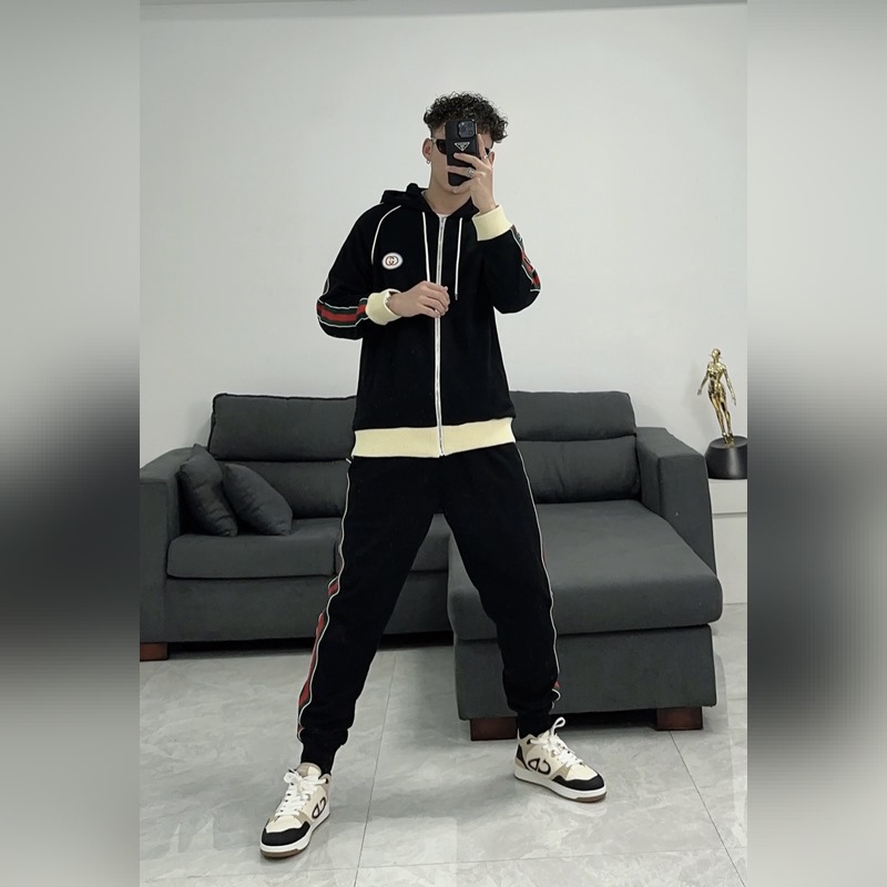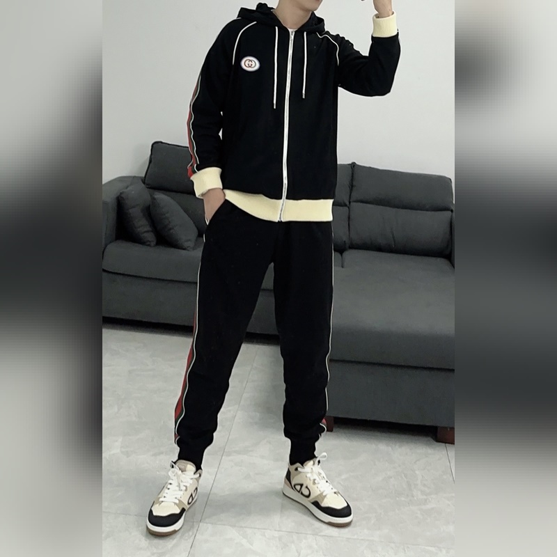 Ez a kötött cipzáras kabát a színtónuson alapul, zseniálisan integrálva élénkpiros és zöld szalagokkal és fehér díszítéssel, kombinálva a kényelmes és lezser laza változattal, retro sportstílust árasztva. Az egymásba nyíló dupla G tapasz sportelemeket épít be a klasszikus logóba, így az egész dizájn bájjal teli