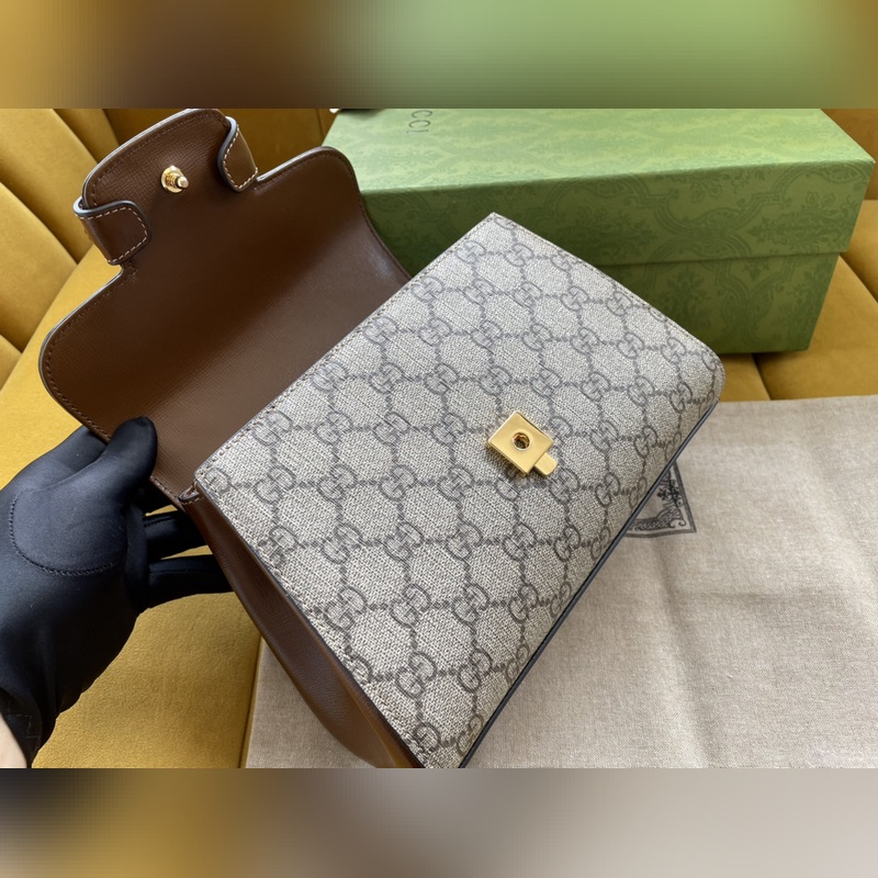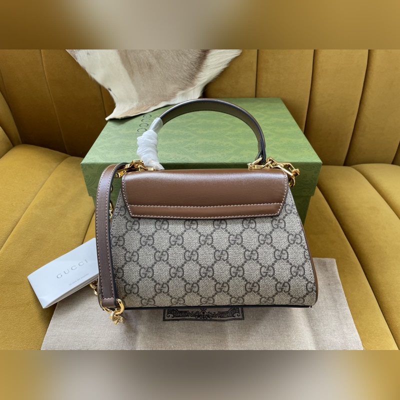 GUCCI modellszám: 703848 Az 1955-ös sorozat világosbarna bőrt használ a kézitáska értelmezéséhez. A sorozat a kollekció dizájnjából merít ihletet, zseniálisan ötvözve a márka több mint 60 évvel ezelőtti kreációjának klasszikus részleteit a modern divat esszenciájával, kiemelve a lócsat egyedi varázsát. Két különböző stílusú vállpánttal felszerelve Méret: 22/16/10,5cm eredeti táskával