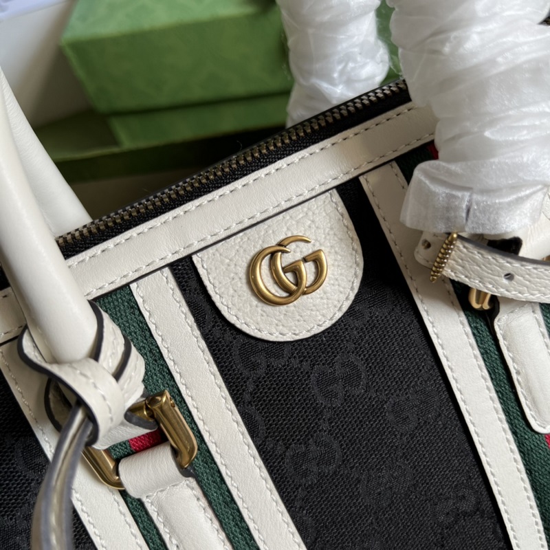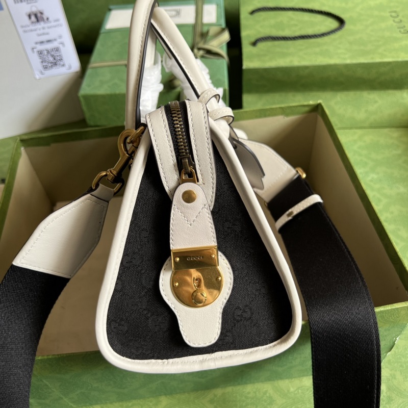 Modell: 715772 Kis vászon táska, a márka új táskák sorozata újraértelmezi az utazótáska stílusát. Fekete eredeti GG vászon, csíkos szalag, Double G hardver és a márka klasszikus logója együtt értelmezi az elegáns stílust. Fekete klasszikus GG vászon, fehér bőr csővezeték, arany tónusú hardver, piros és zöld szalag Double G, levehető személyazonosító címke, levehető bőr kulcstartó, fém védőlábak, oldalsó cipzáros csat, belső rész: 2 cipzáras zseb, fogantyú (8 cm magas) levehető vállpánt (56 cm magas) cipzár.