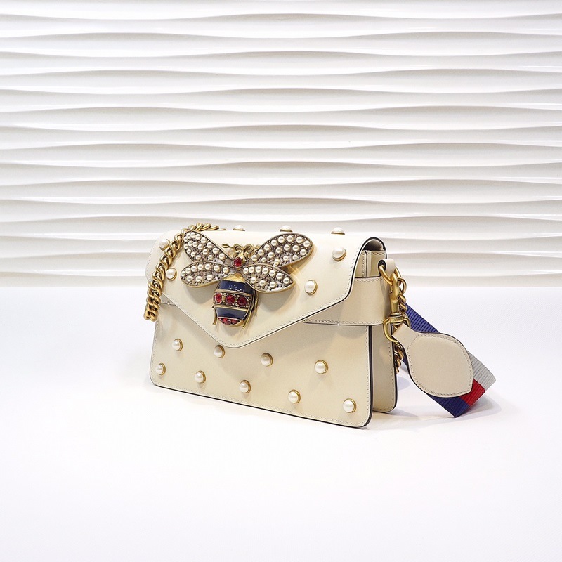 GUCCI Golden Bee Logó Kistáska Egy vállon Keresztezett Modellszám: 453778 Fehér