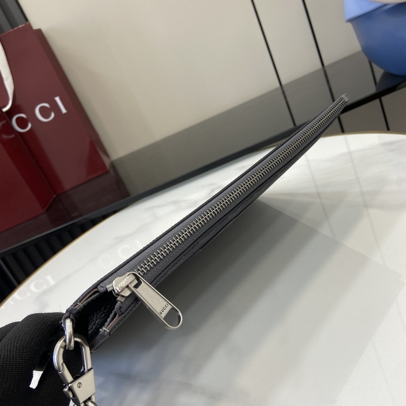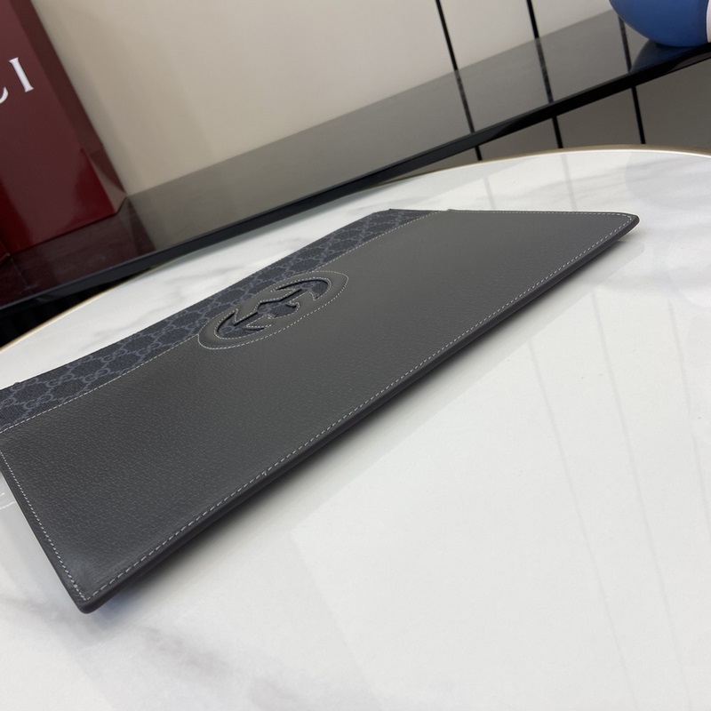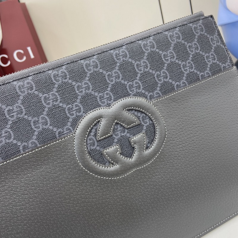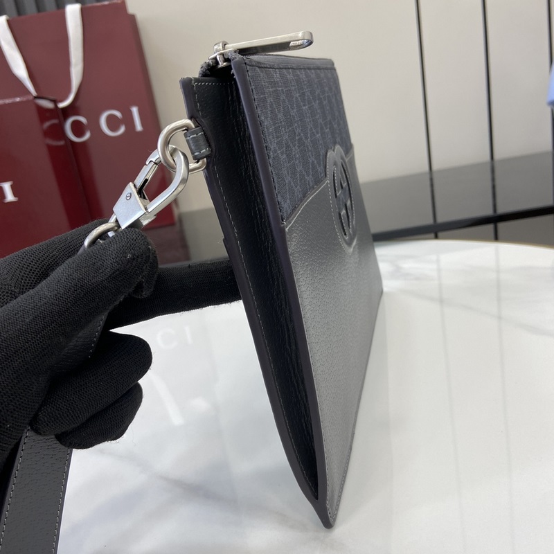 Tasak kivágott G reteszeléssel. Ez a kivágott bőr G részlettel ellátott tasak a GG Supreme vászonnal párosítva modern, de klasszikus kiegészítőt alkot. Az ikonikus, egymásba nyíló G logó a Gucci kollekcióinak szerves részét képezi az 1960-as években történt megalkotása óta. A Guccio Gucci kezdőbetűiből származó logót különféle formákban és stílusokban találták fel újra. Fekete-szürke GG Supreme vászon, szürke bőrszegély, moaré bélés, kivágás G részlet, belső: 4 belső kártyarekesz és 1 külső füles zseb, csukló (12 cm magas).