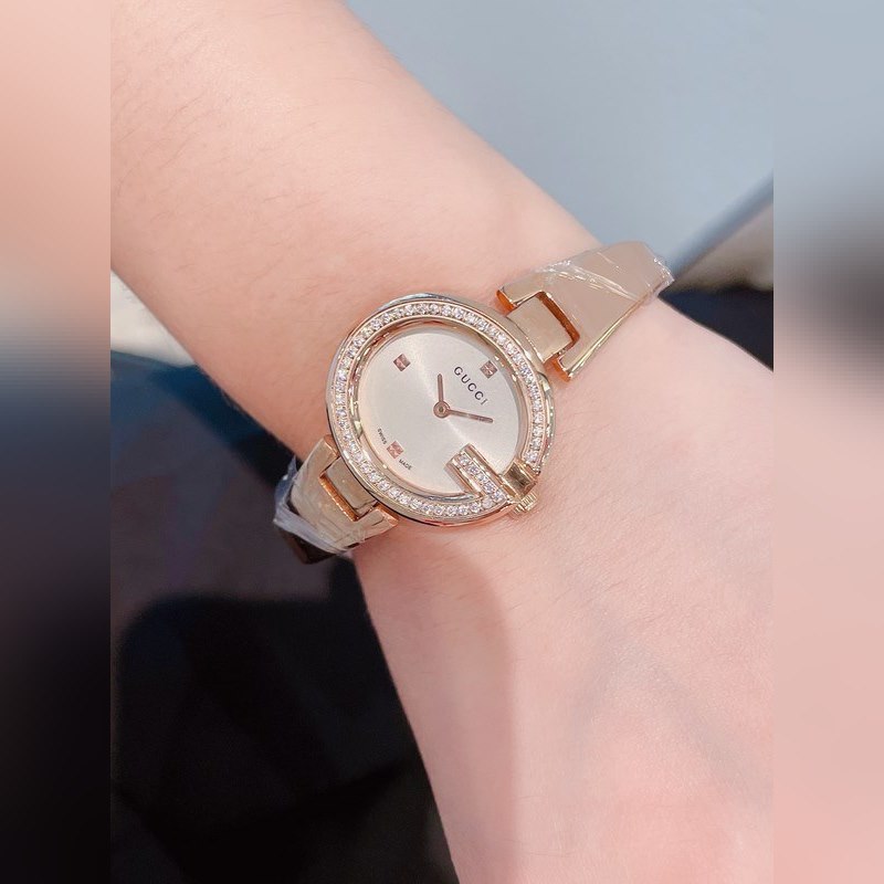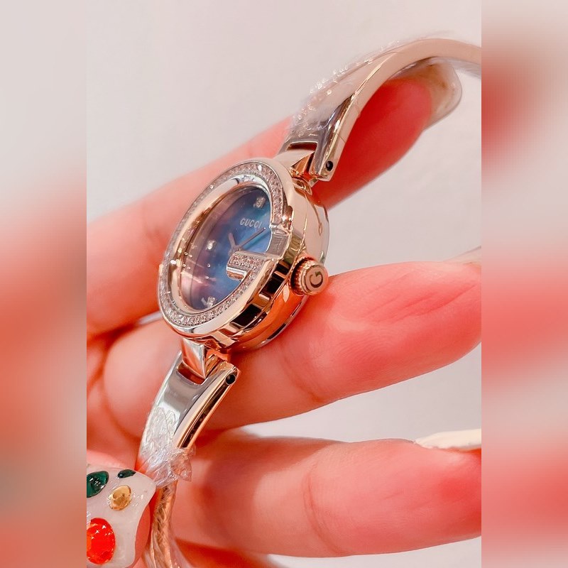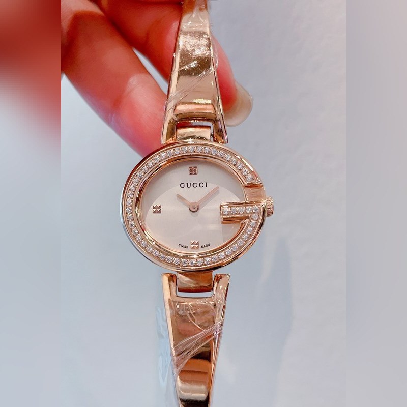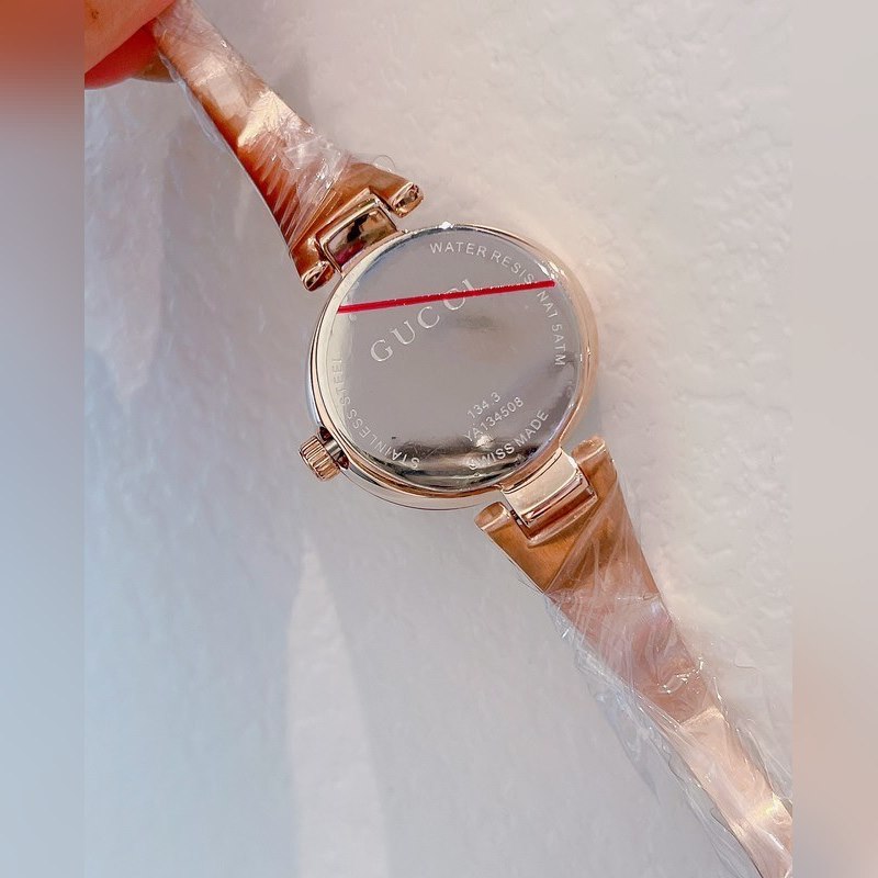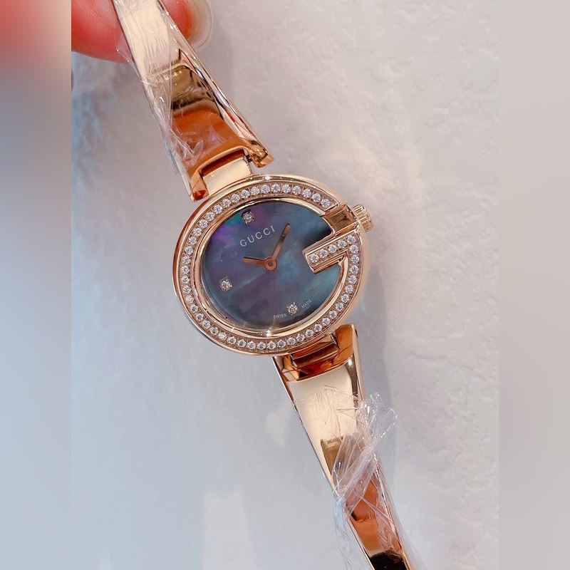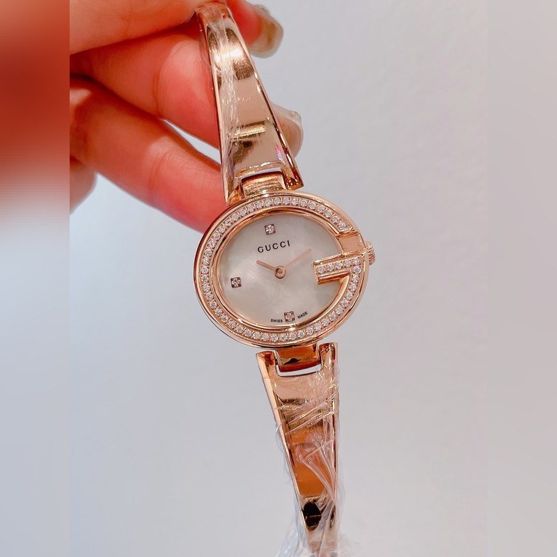 Az ovális G forma a márka egyedi jellemzőit mutatja, az íves karkötő laza szett pántja pedig kiemeli a nők elegáns varázsát. A divatóra egy importált kvarcszerkezettel van felszerelve, különböző fekete-fehér és gyöngyház betűtípusokkal. A 3 részes 316-os rozsdamentes tok az eredeti minőséget mutatja.