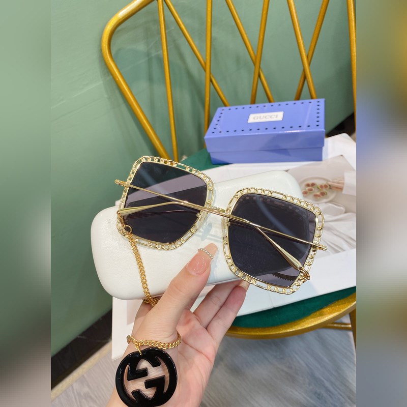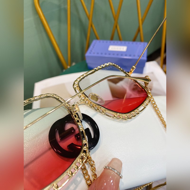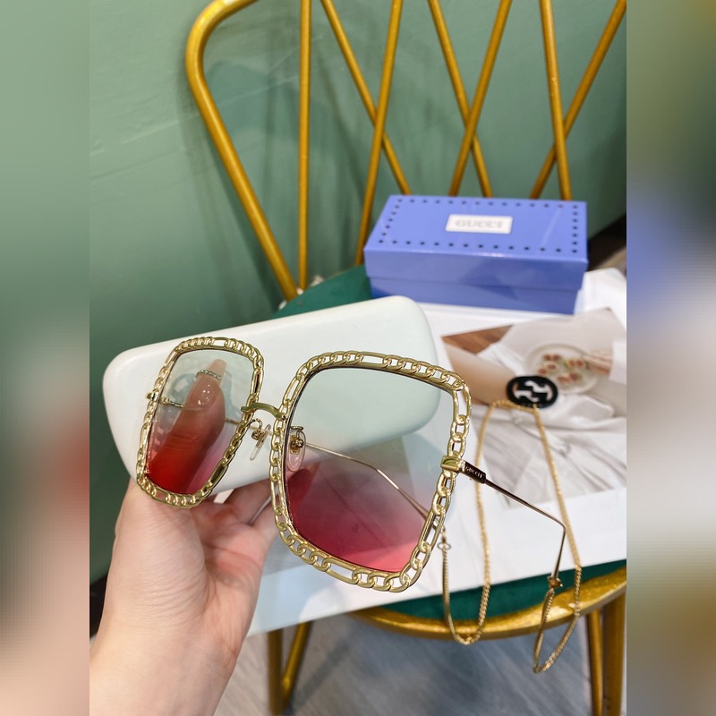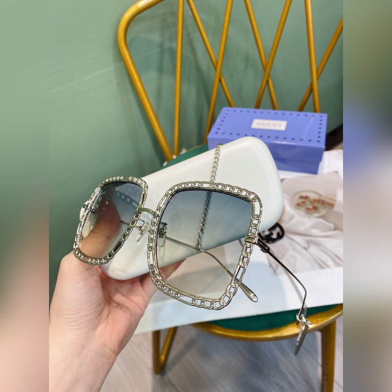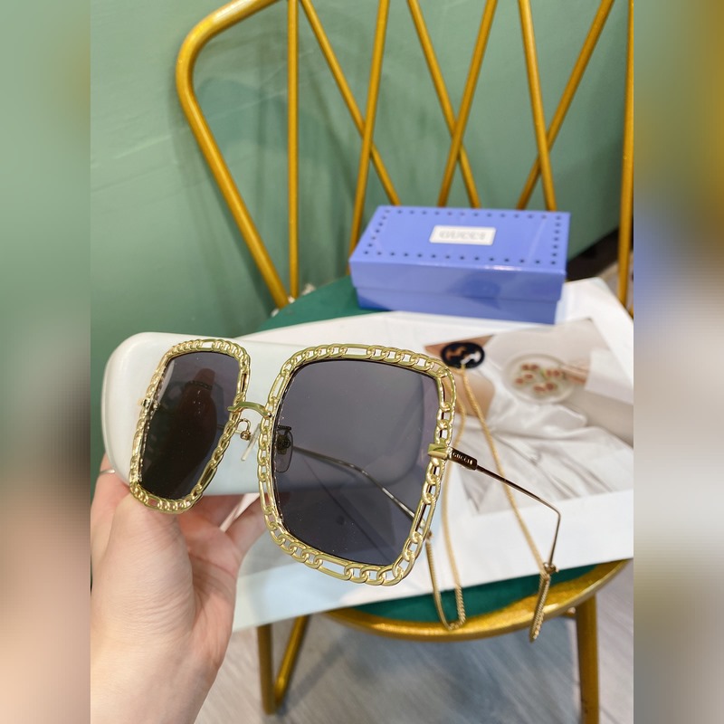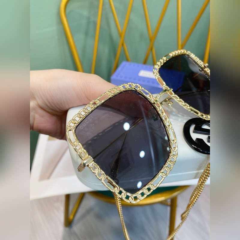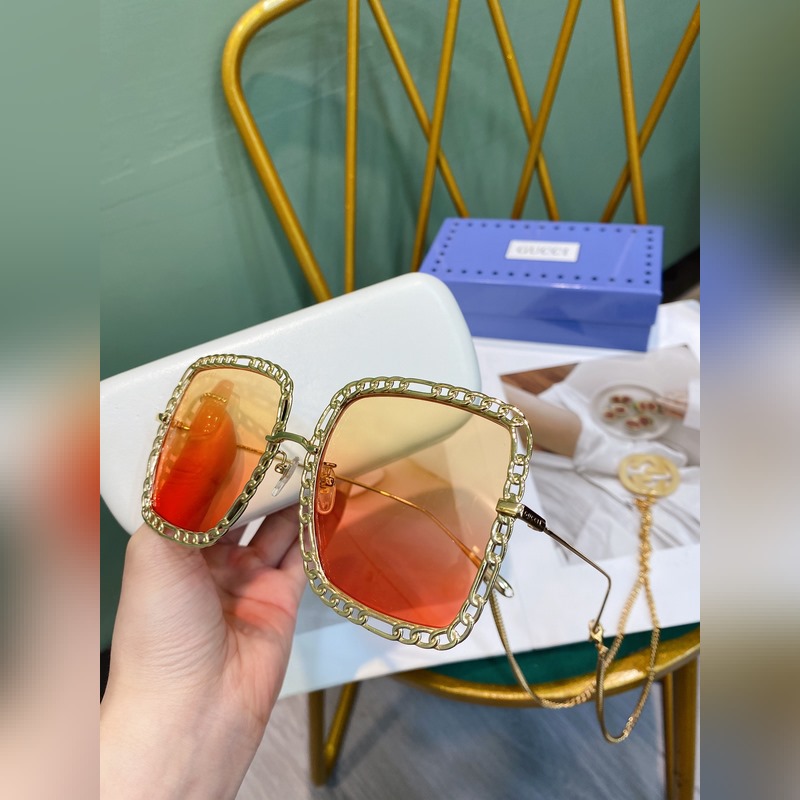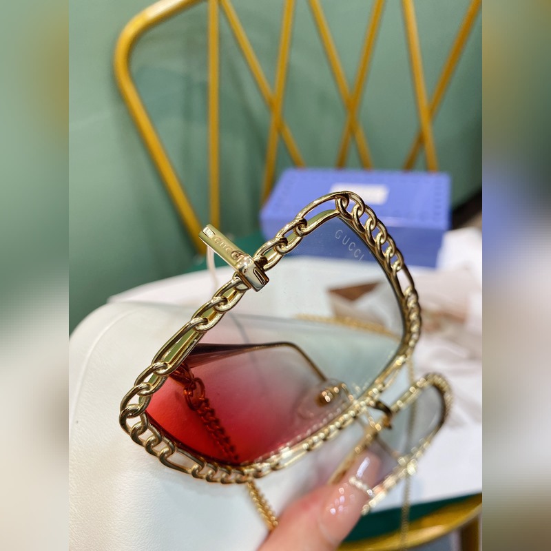 Gucci Modell: GG1033S Nagy fémkeretes napszemüveg A hosszú lánc nyakláncként vagy pulóverláncként is használható Méret: 56-21-140
