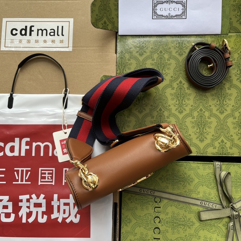 A GG “Gucci Love March” új divatsorozata a márkakollekció elemeit válogatja össze, geometrikus formákkal újraértelmezi az egymásba illeszkedő dupla G logót, és számos egyedi terméket mutat be. Az arany tónusú kiegészítők elegáns retro stílust adnak ehhez a cikkhez, klasszikus és időtlen dizájnstílust mutatva, akárcsak ennek a divatbemutatónak a helyszíne. Ez a világosbarna bőr mini kézitáska két cserélhető vállpánttal, fekete eredeti bőrrel vagy csíkos hálóval párosul, hogy segítsen értelmezni a különböző stílusokat és megjelenéseket