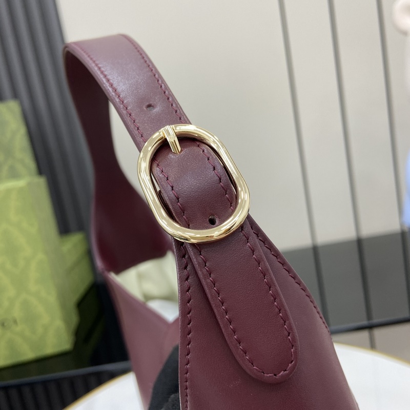 Új Gucci Jackie közepes válltáska. A prémium prémium bőrből készült Gucci Jackie válltáska a 2025-ös tavaszi/nyári kollekcióból a márka klasszikus válltáskáinak kidolgozottságát, félhold formáját és kortárs dizájnját mutatja be. A világos arany tónusú hardver, a bőr csővezetékek és a további piros és zöld hálószíj kombinációja révén ez a bordó bőrből készült Gucci Jackie Medium válltáska még több stílust biztosít. Bordó bőr, világos arany tónusú vasalat, bőr bélés, belső: egy cipzáros zseb Gucci emblémás cipzárral, fogantyúk (19 cm magas), levehető webes vállpánt (52 cm magas), kampós záródás, súly: kb. 0,6 kg.