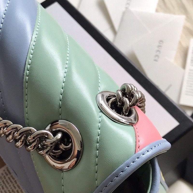 Olasz kreációszám: 443497GG MarmontA 2020-as kora őszi sorozat középpontjában a színes tónusok állnak, mint a macaron. Féktárcsa dupla G fém hardverrel Csúszó láncos vállpánt többféle szállítási móddal. Szabadon váltható a váll és a kézi Wave steppelt bőr hátlap között, GG logóvalWave steppelt bőrrel. (A tolólánc kb. 55 cm-es vállpántra vagy kb. 30 cm-es felső fogantyúra állítható)Mikroszálas bélés. Velúrszerű megjelenés