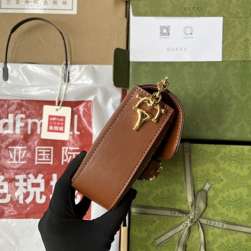 A Horsebit 1955 szerkezeti formája és tiszta vonalai értékes, puha ezüst gyíkokban jelennek meg, kiemelve a sorozat ikonikus arany hardverét. Szuper elegáns, bájos és fényes, a ritka ezüst gyíkmintás táska báránybőr béléssel és teljes rézlánccal párosul. A GG genetikai kódjának részeként a dupla gyűrű és rúd kialakítás a lovas világból kölcsönzött Ház szimbólum egyik legegyedibb elemeként került kialakításra. A kifinomult láncszíj monogramos részletekkel kifinomult jegyet kölcsönöz a stílusnak
