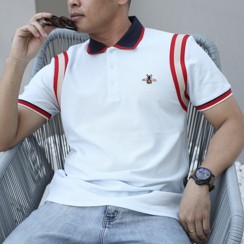 GUCCI vállszalag színes toldástervezés, mellhímzéses POLO ing