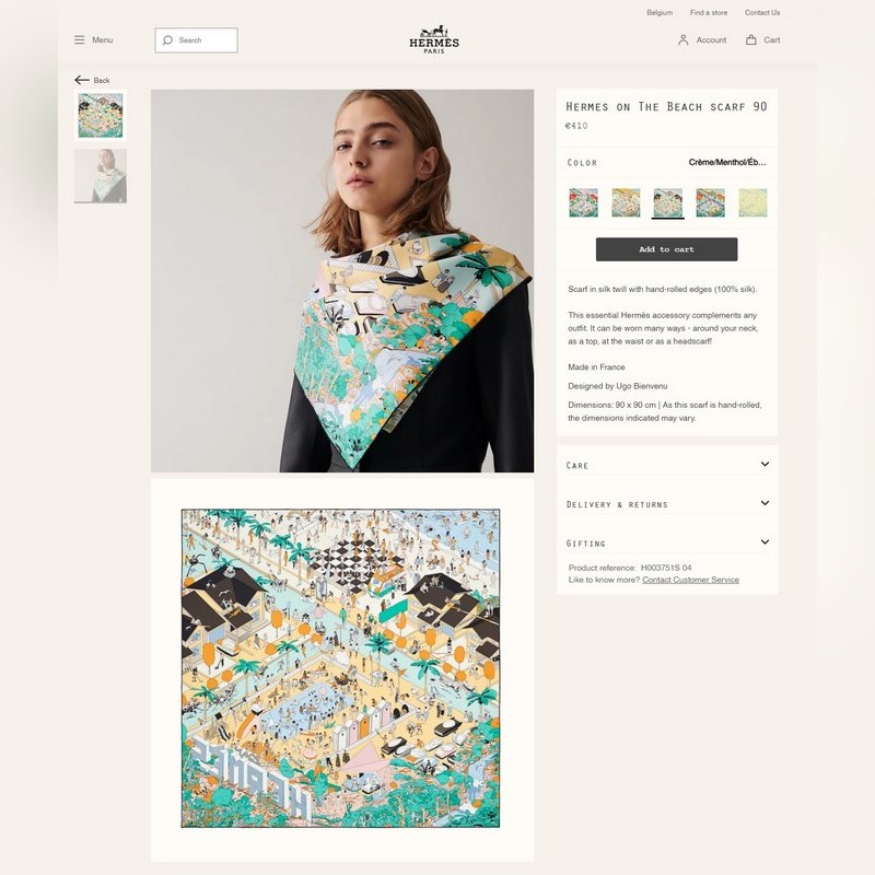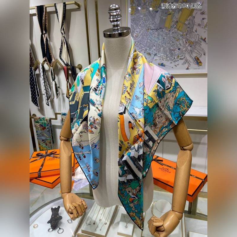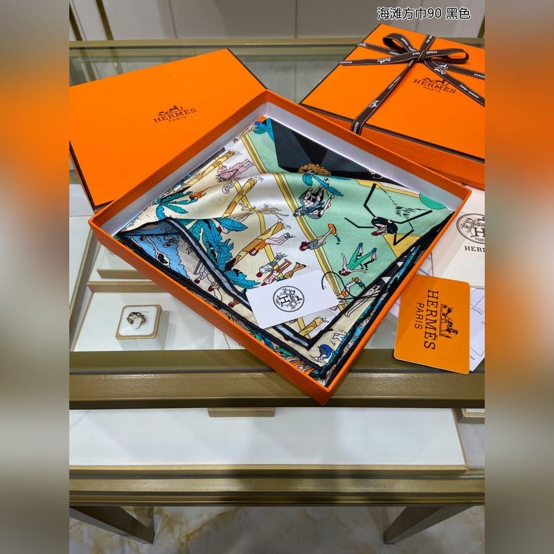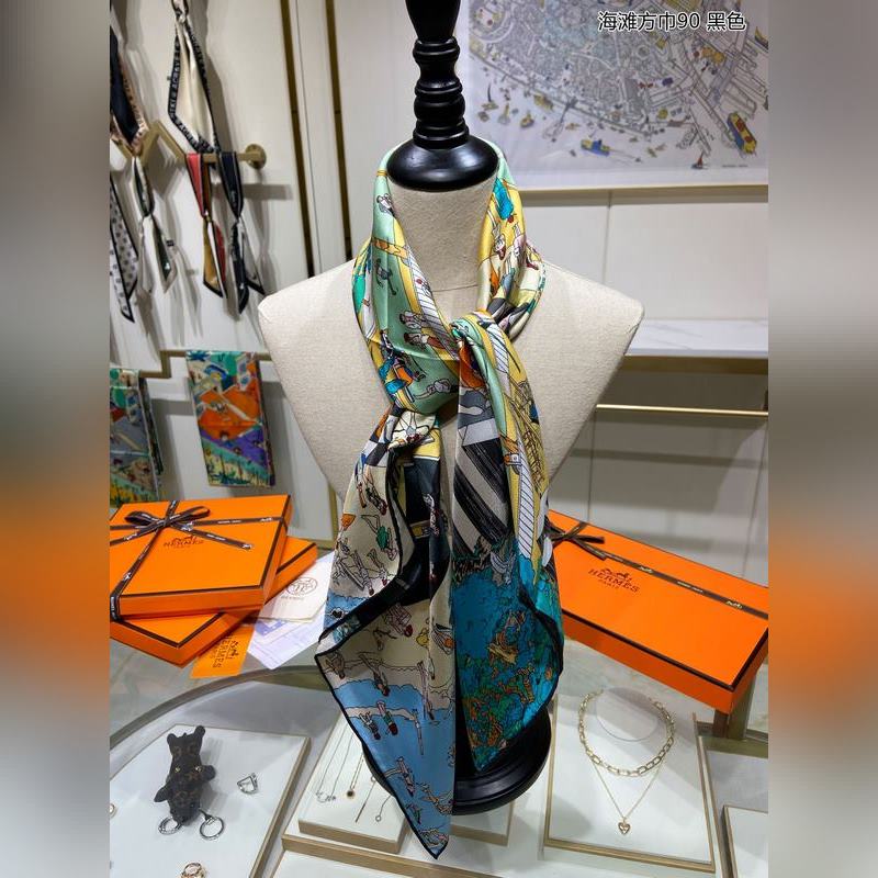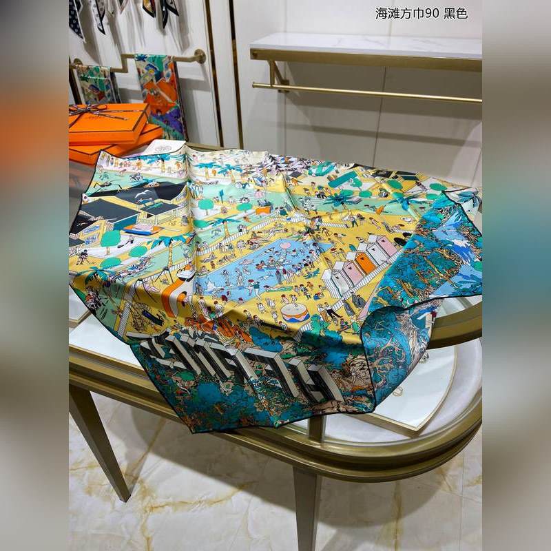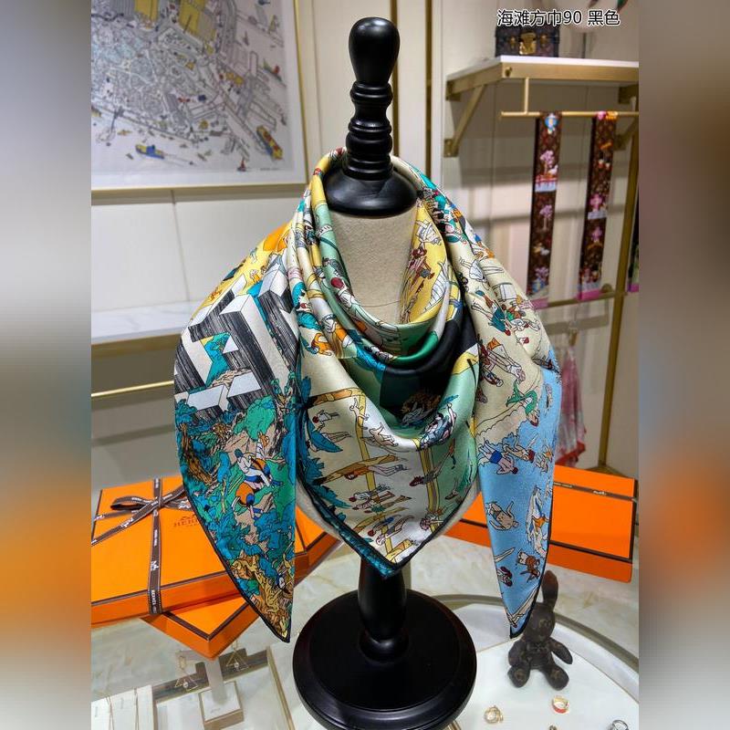 HERMES Beach Square Sál 90 Selyem négyszögletes sál 100% Twill Selyem